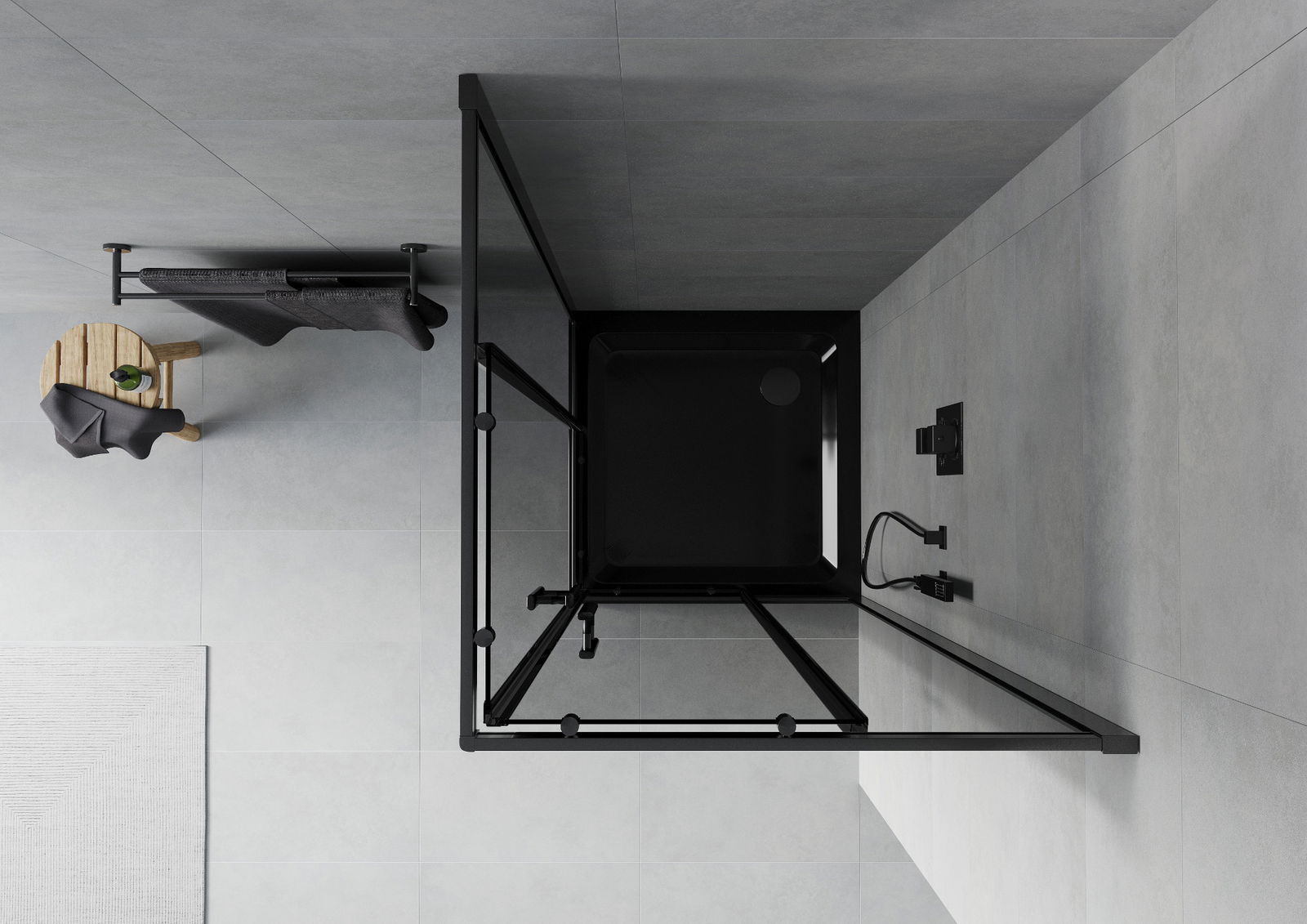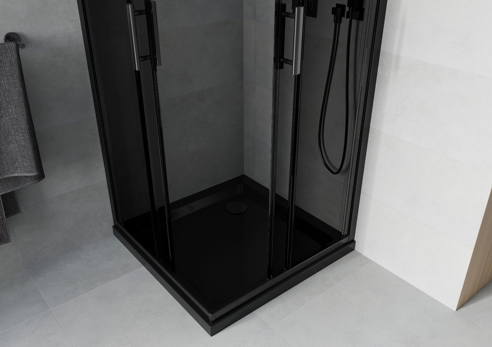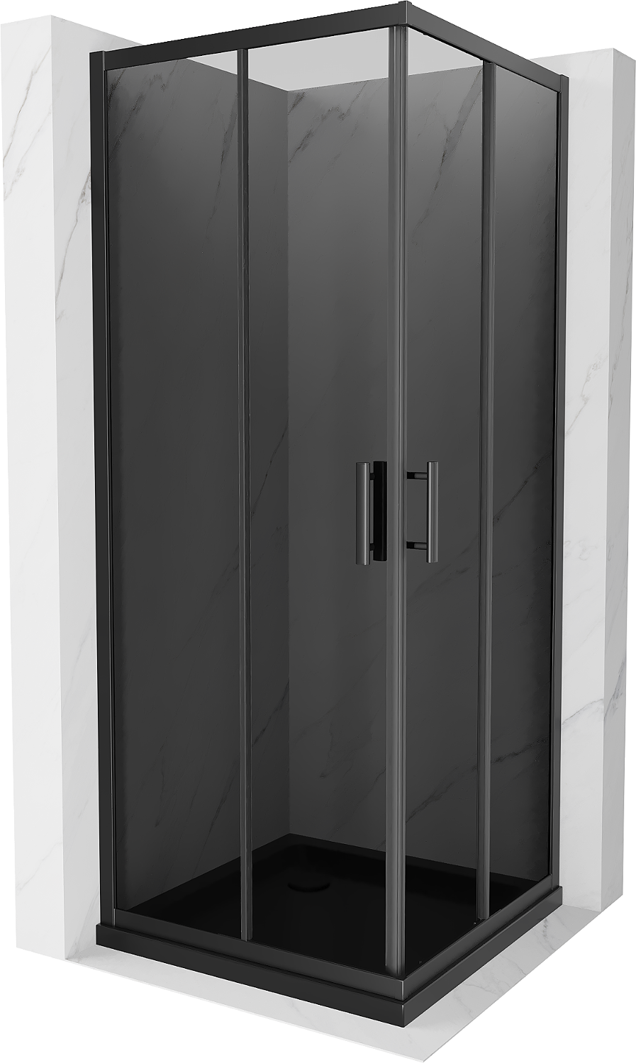 Mexen Rio cabină de duș pătrată 80 x 80 cm, grafit, negru + cadă Flat, negru - 860-080-080-70-40-4070B