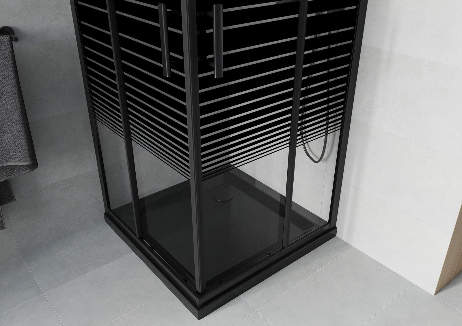 Mexen Rio cabină de duș pătrată 70 x 70 cm, benzi negre, negru + cadă Flat, negru - 860-070-070-70-20-4070B