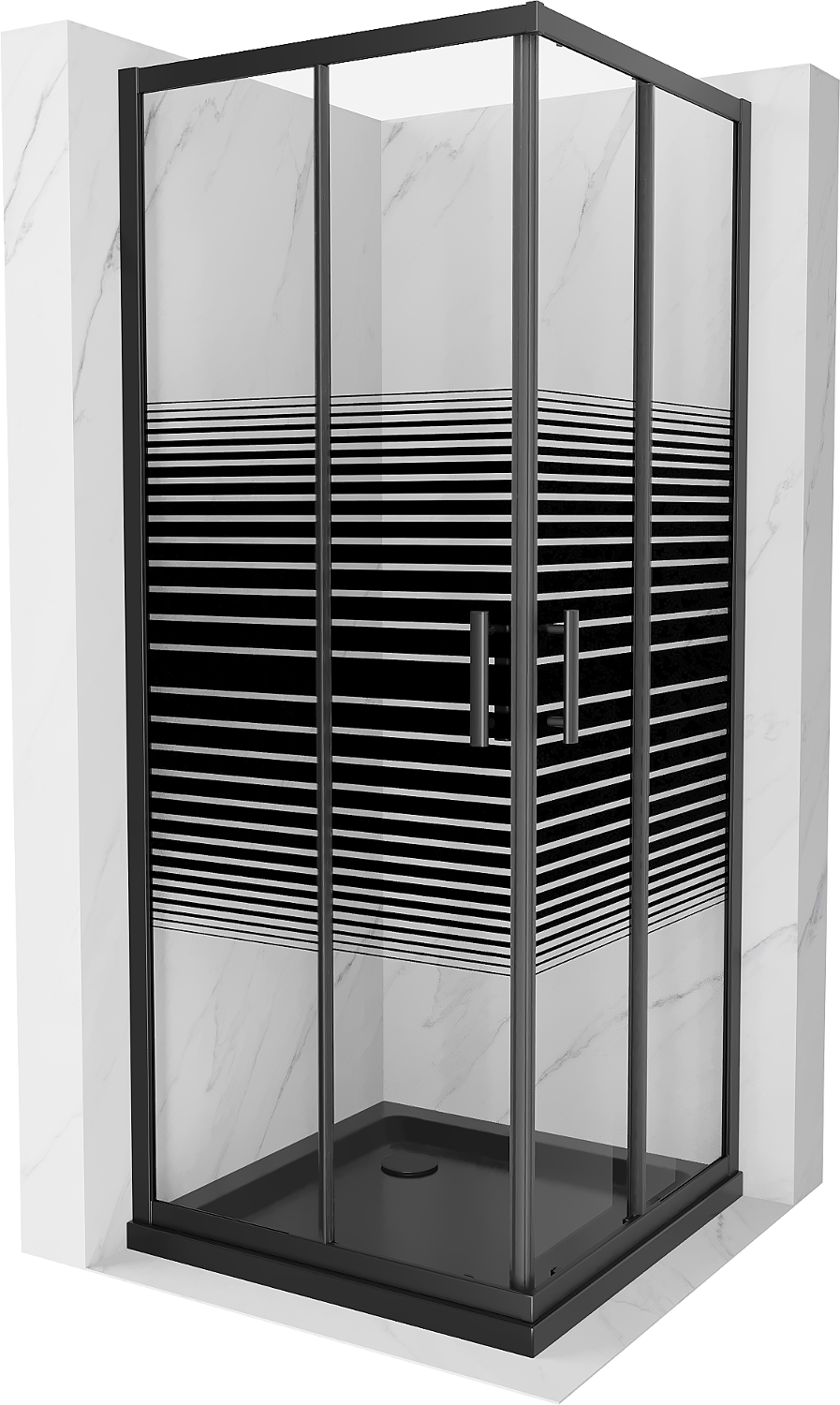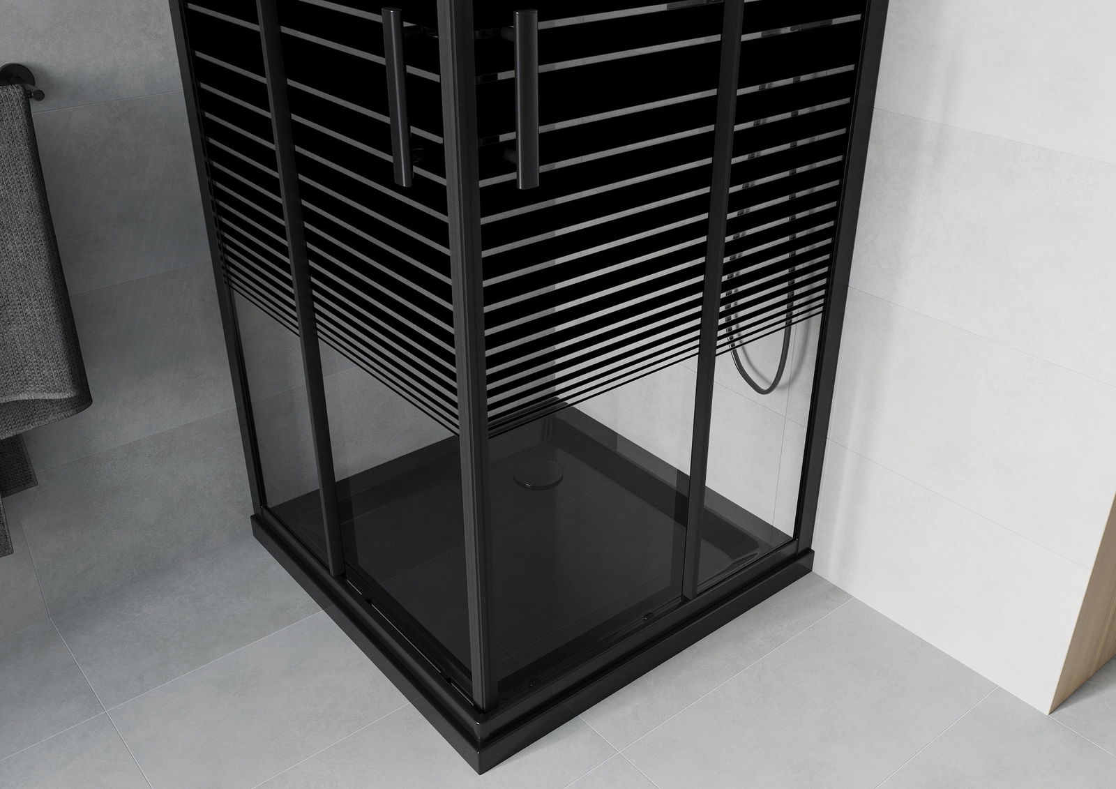 Mexen Rio cabina de duș pătrată 70 x 70 cm, dungi negre, negru + cadă Flat, negru - 860-070-070-70-20-4070B