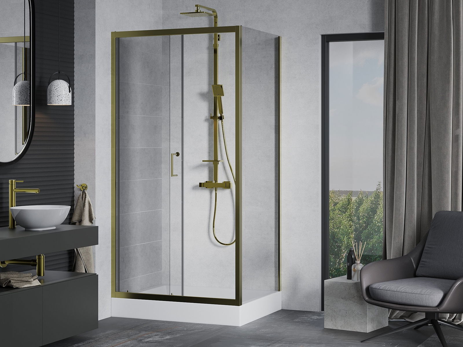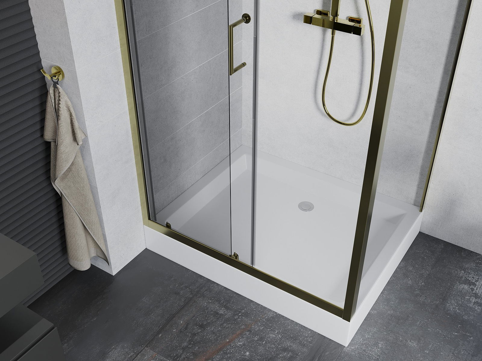 Mexen Apia cabină de duș glisantă 120 x 80 cm, transparentă, aurie + cădiță Rio - 840-120-080-50-00-4510