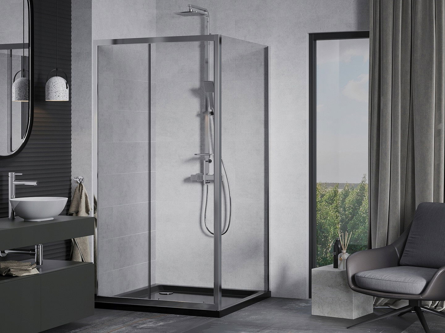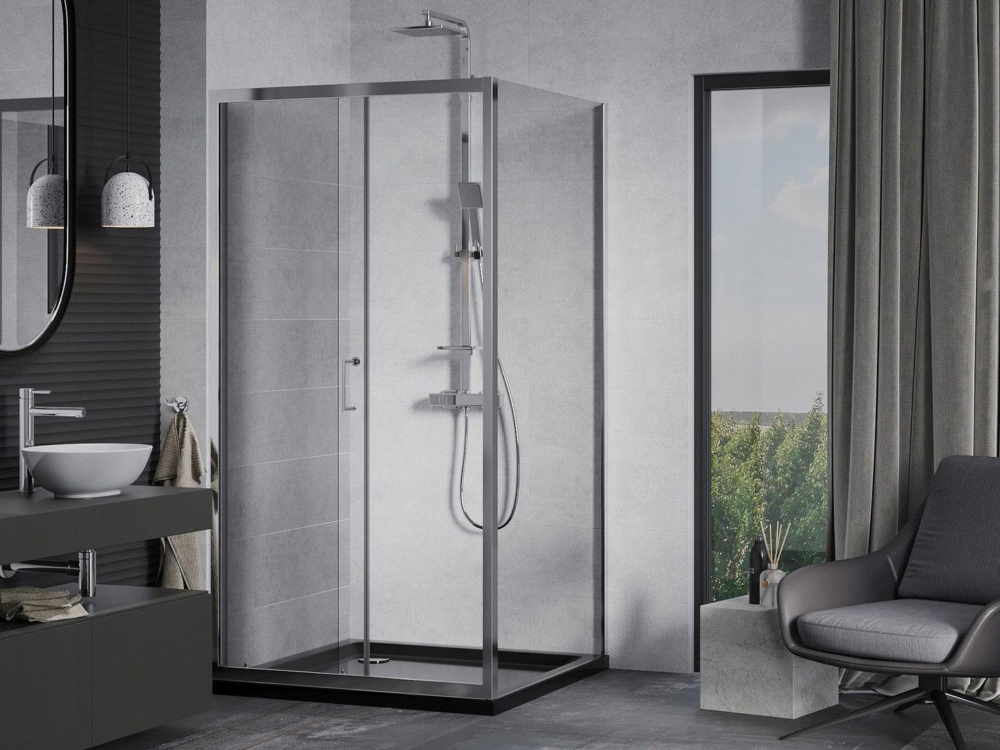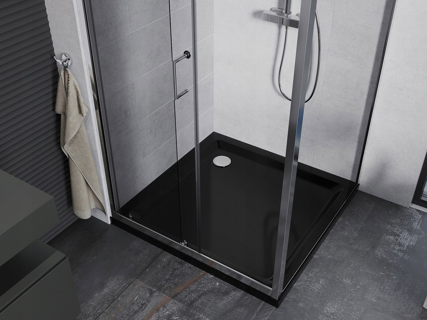 Mexen Apia cabină de duș glisantă 90 x 90 cm, transparentă, crom + cadă Flat, negru - 840-090-090-01-00-4070