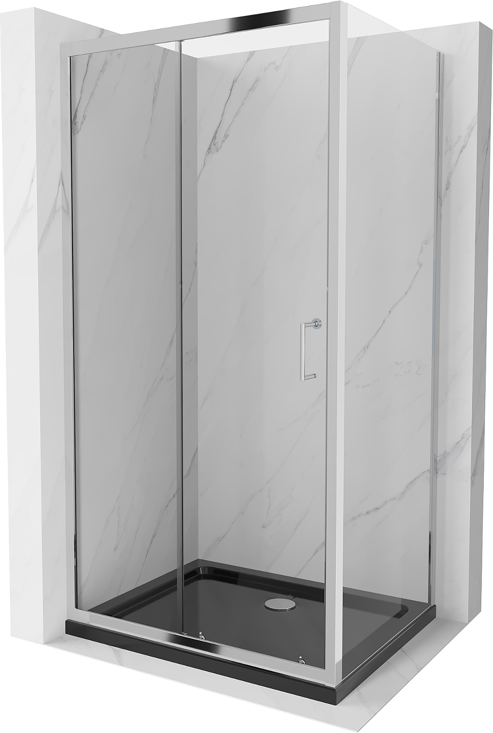 Mexen Apia cabina de duș glisantă 100 x 80 cm, transparentă, cromată + cadă Flat, neagră - 840-100-080-01-00-4070