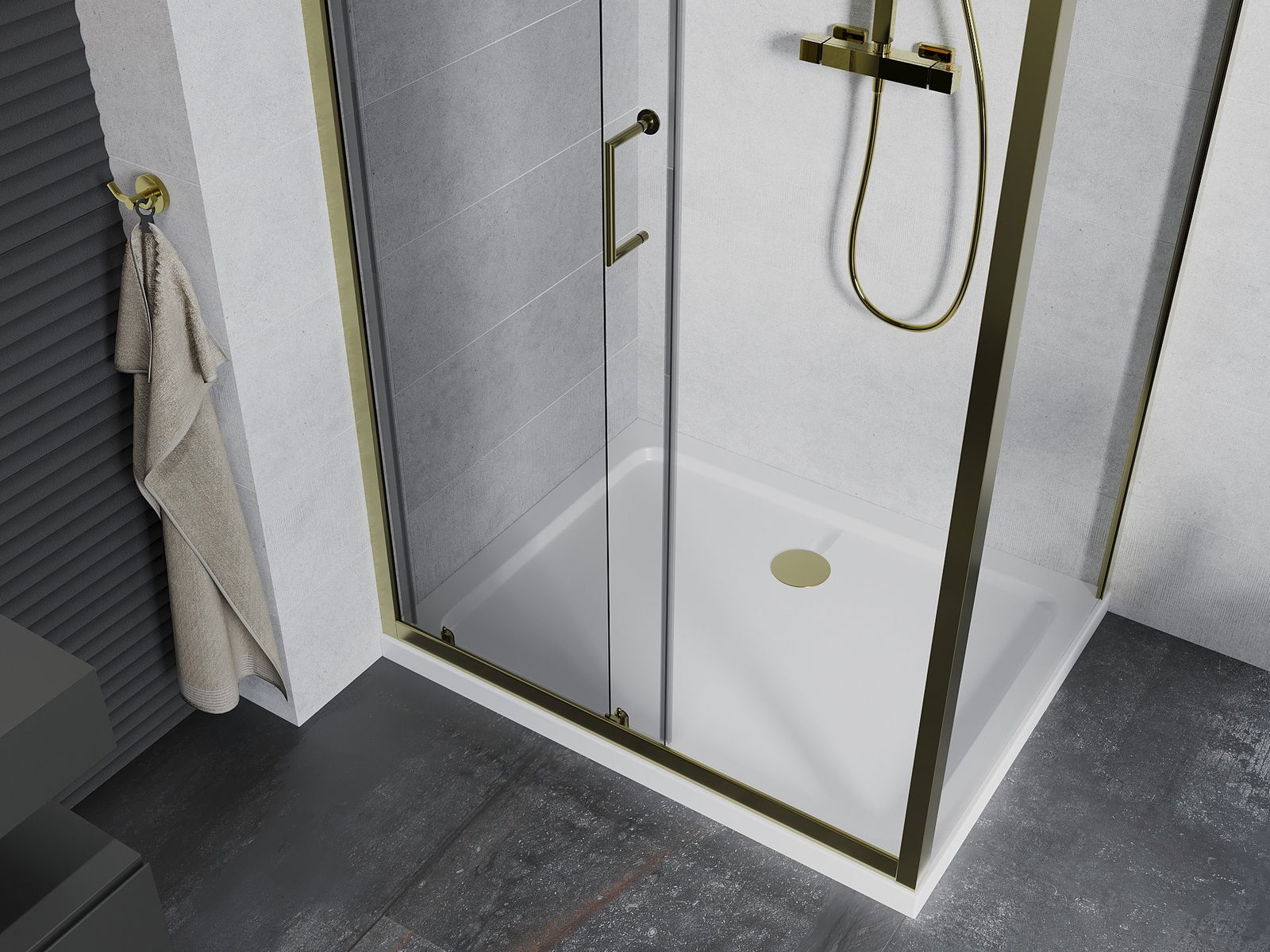 Mânerul la îndemână și confortabil era din metal durabil și rezistent. Forma la modă combinată cu un finisaj adaptat culorii profilurilor oferă întregului aspect modern și elegant, subliniind estetica fiecărei băi.