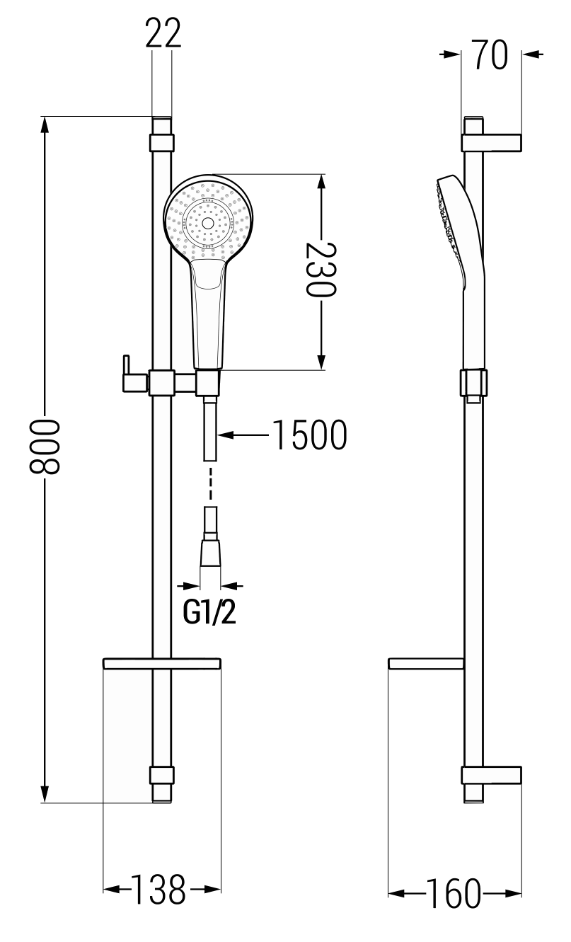 Fluxul de apă standard care imită ploaia naturală. Picăturile curg uniform pe corp, înfășurându -le cu o senzație plăcută de hidratare și permițându -vă să vă cufundați într -un sens relaxant și liniștitor de experiență în timpul băii de zi cu zi.