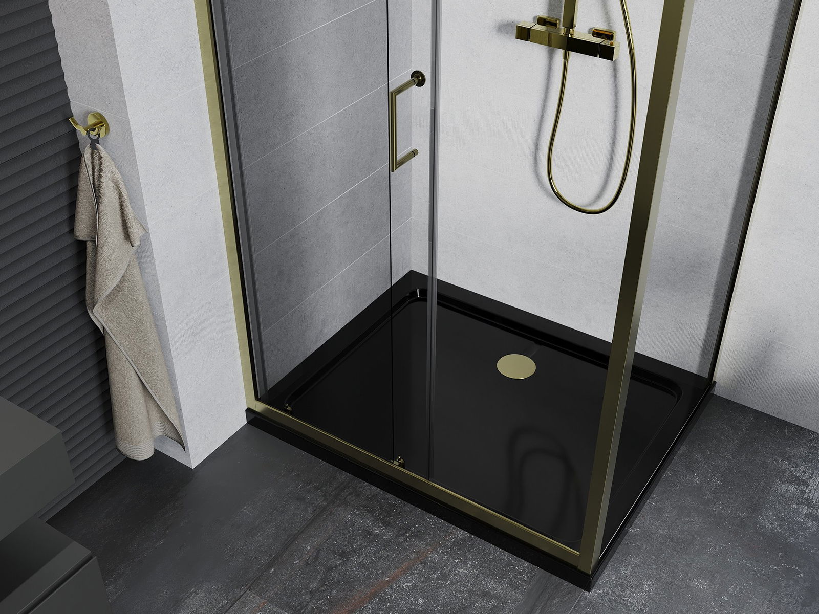 Mexen Apia cabină de duș culisantă 100 x 80 cm, transparentă, auriu + cadă plată, negru - 840-100-080-50-00-4070G