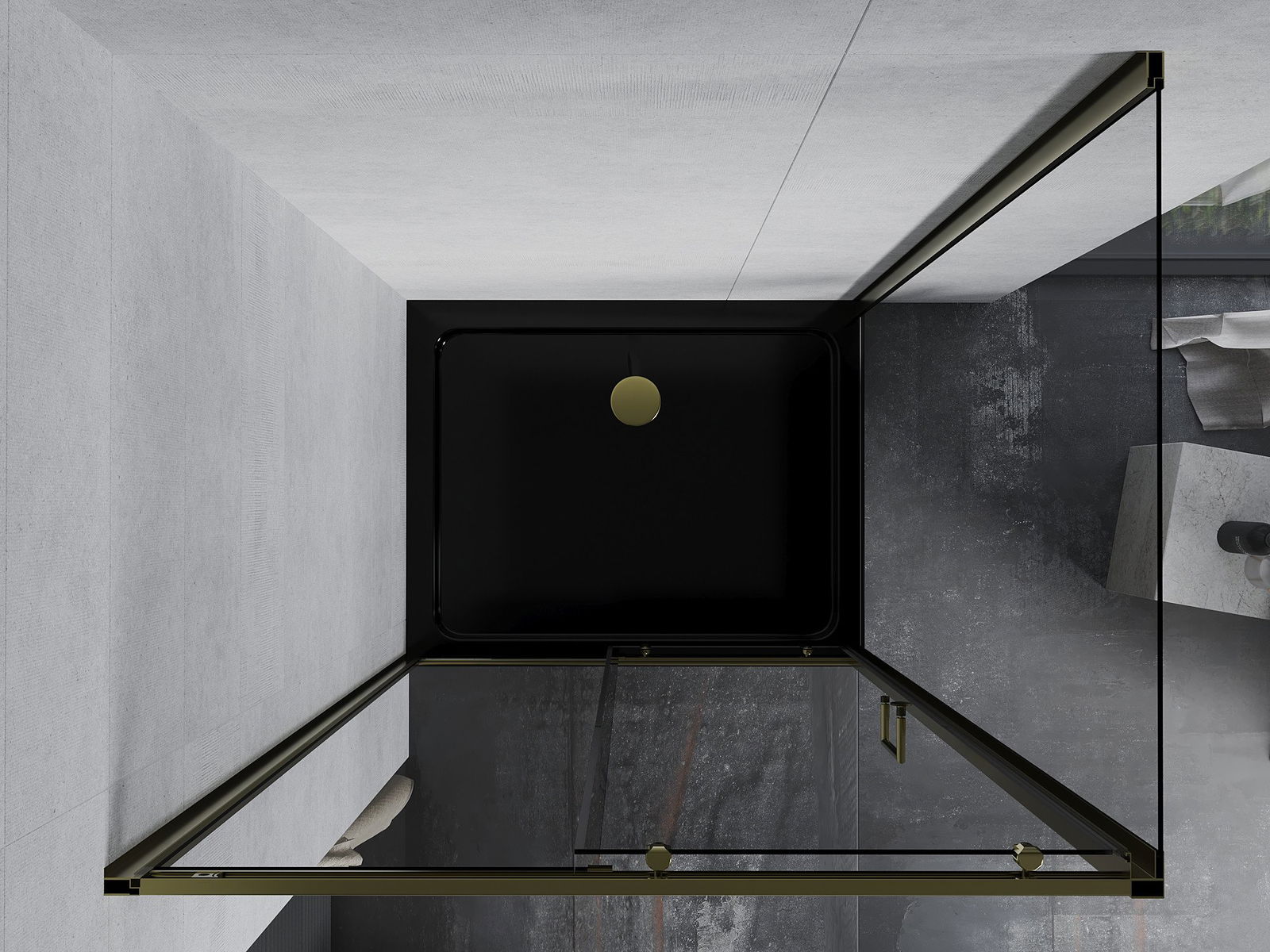 Mexen Apia cabină de duș glisantă 140 x 70 cm, transparentă, aurie + cădiță Flat, neagră - 840-140-070-50-00-4070G