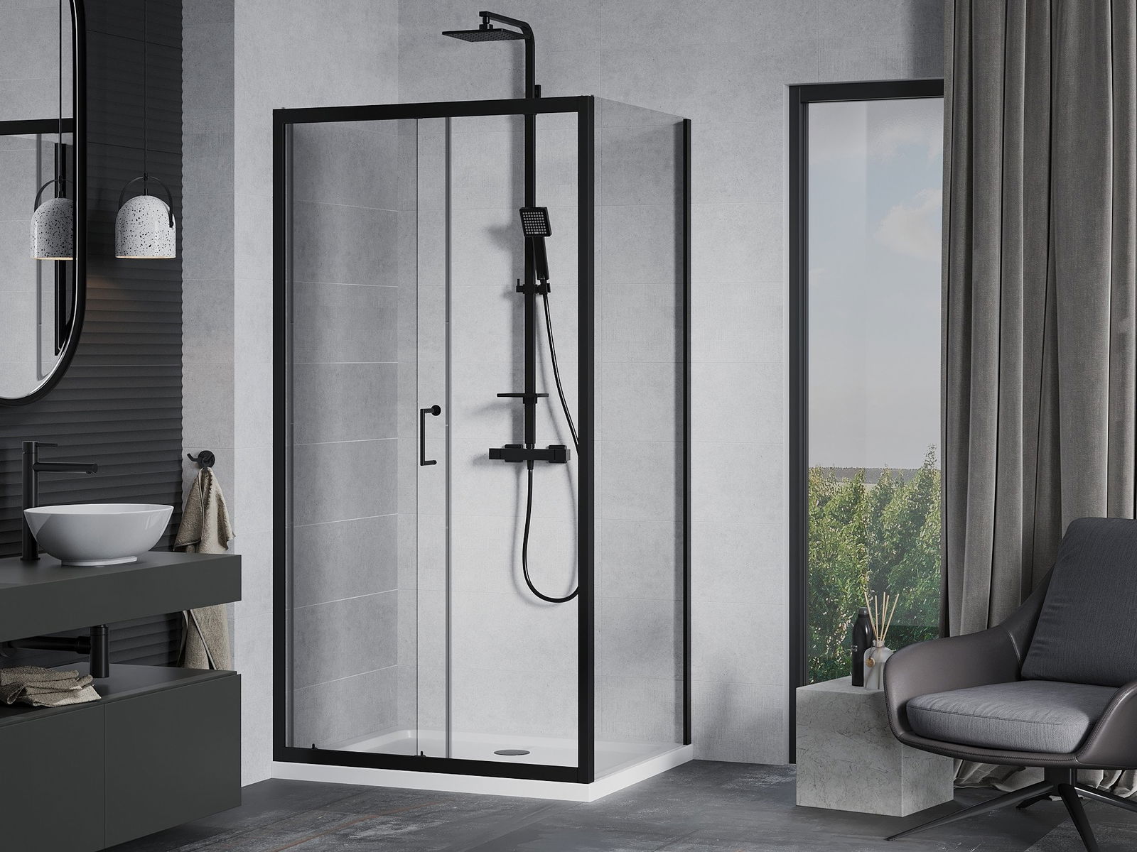Mânerul la îndemână și confortabil era din metal durabil și rezistent. Forma la modă combinată cu un finisaj adaptat culorii profilurilor oferă întregului aspect modern și elegant, subliniind estetica fiecărei băi.