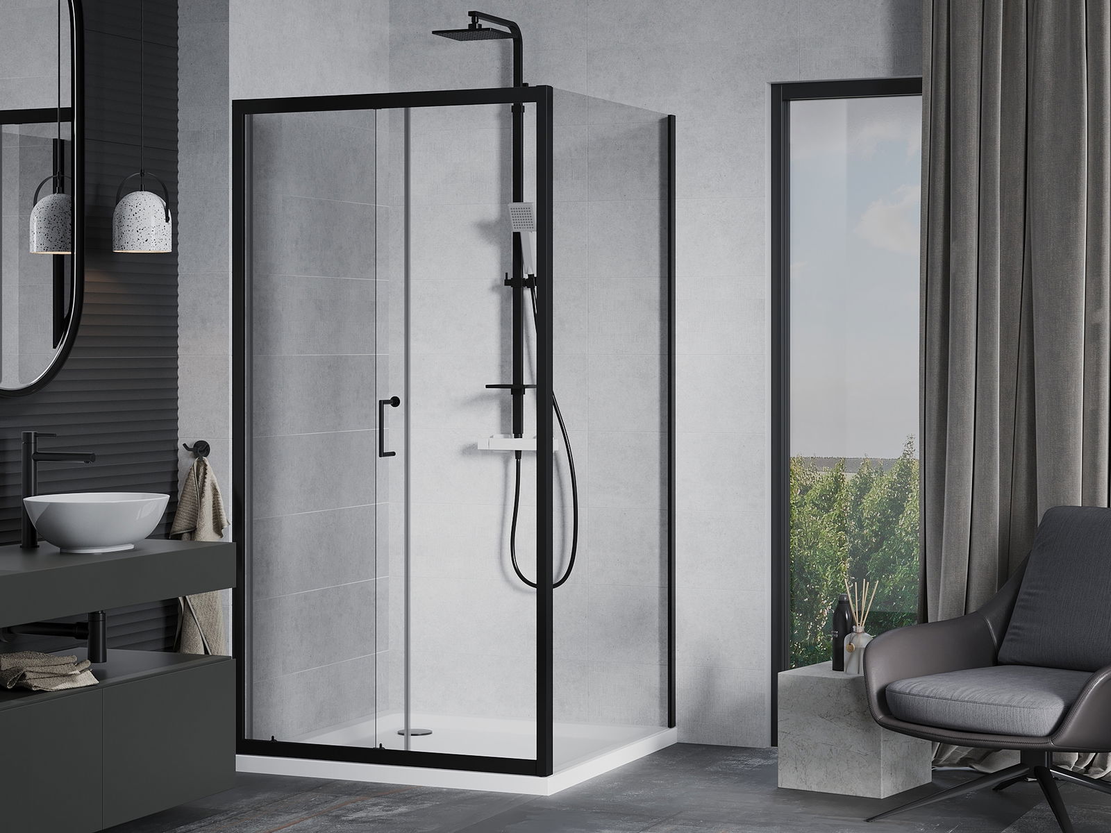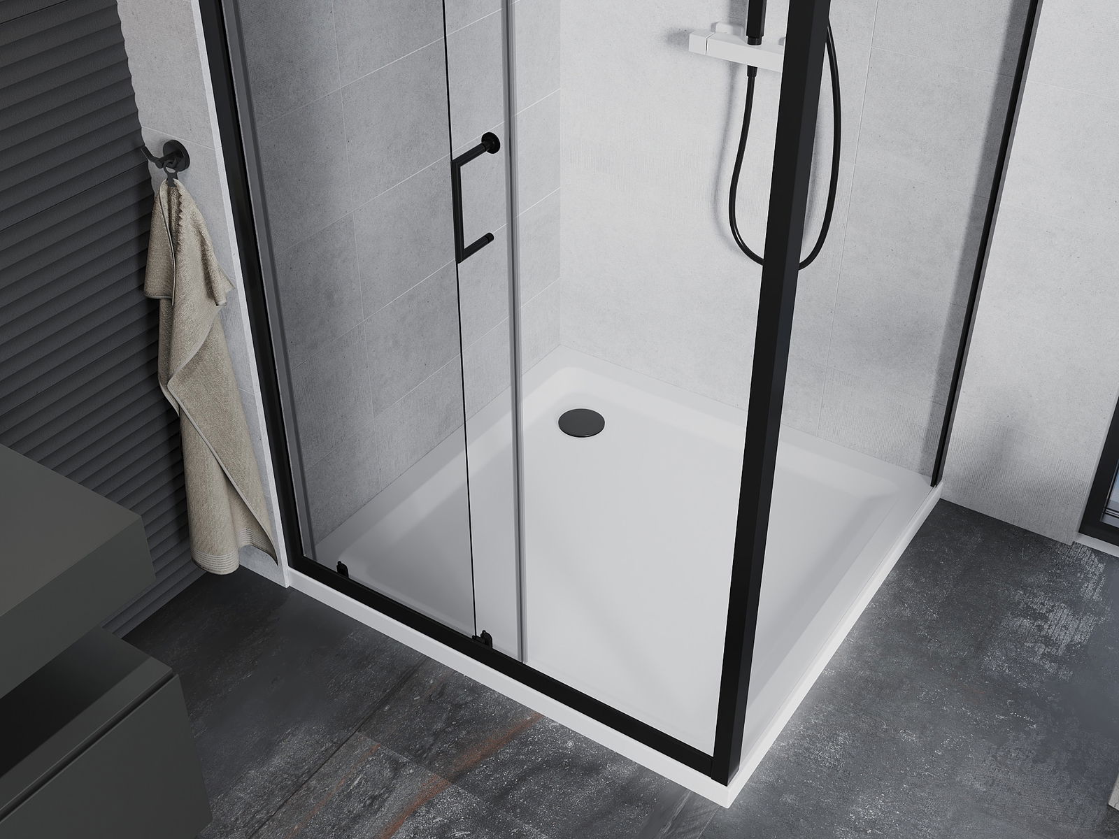 Mexen Apia cabină de duș glisantă 90 x 90 cm, transparentă, neagră + cadă de duș Flat, alb - 840-090-090-70-00-4010B