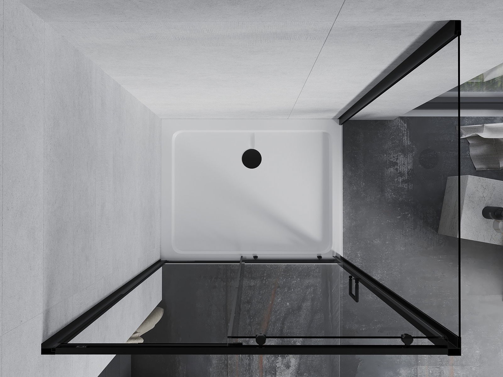 Mexen Apia cabină de duș glisantă 90 x 100 cm, transparentă, neagră + cadă Flat, alb - 840-090-100-70-00-4010B