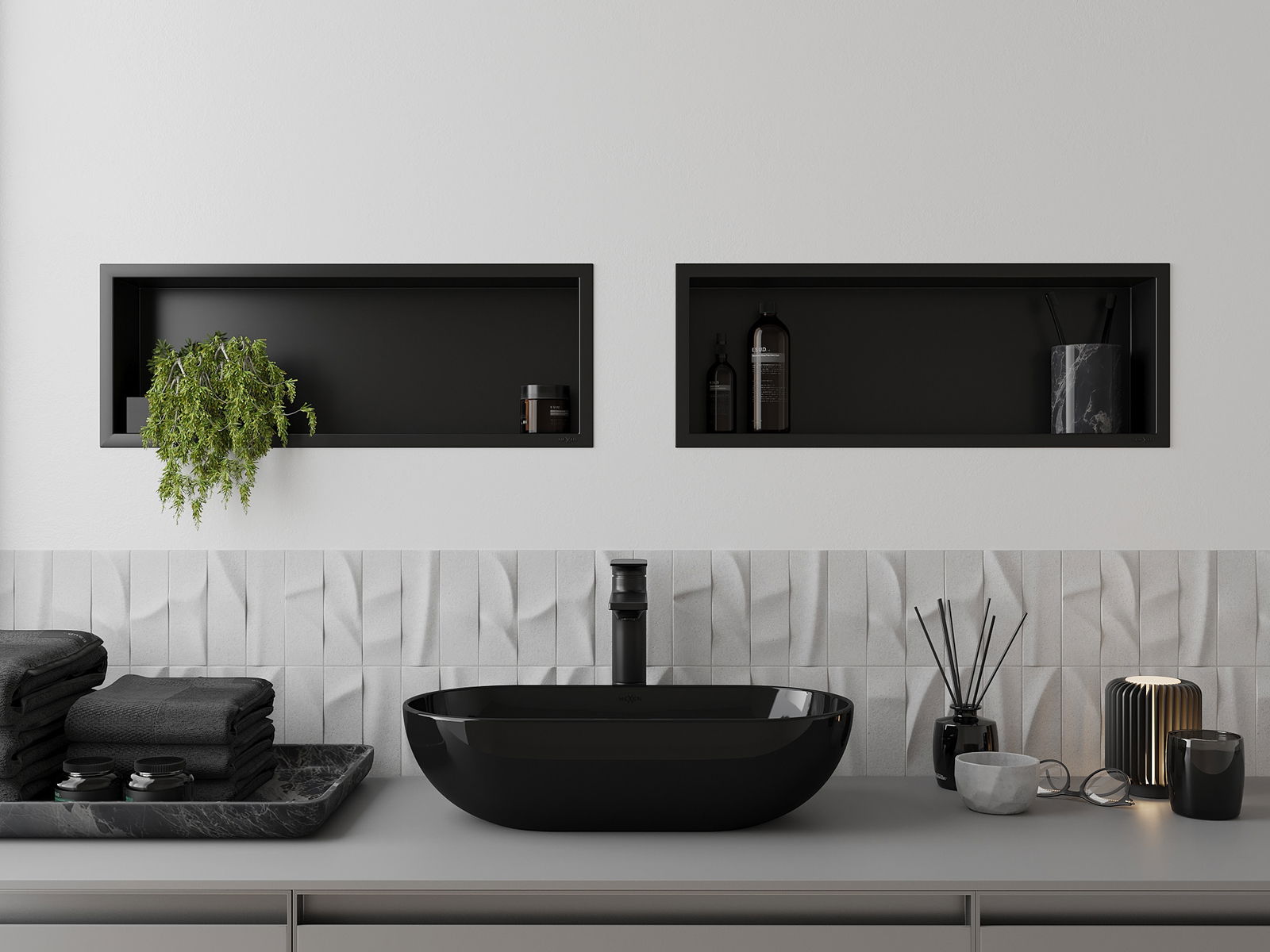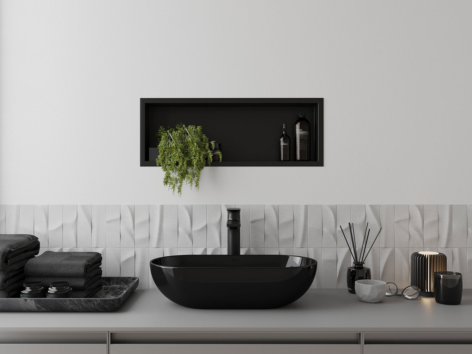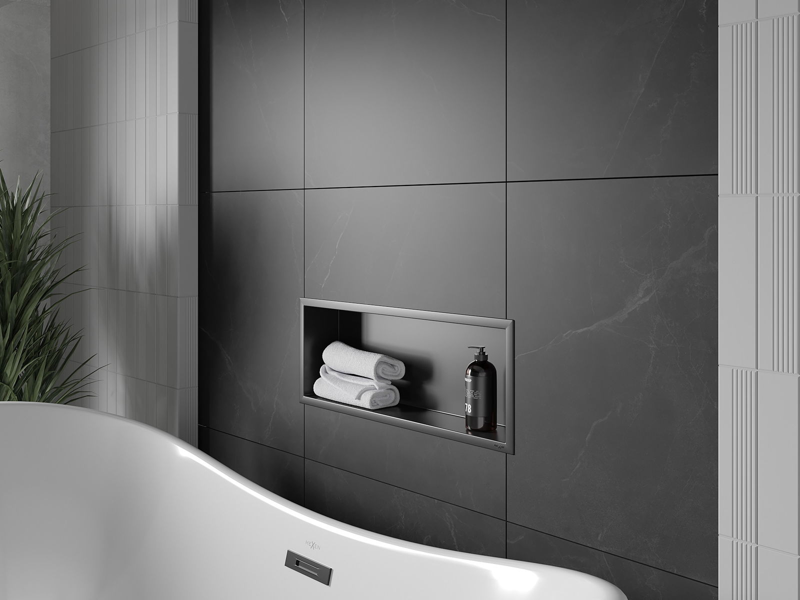 Mexen X-Wall-R raft de perete încastrat cu margine 60 x 20 cm, negru - 1970602010