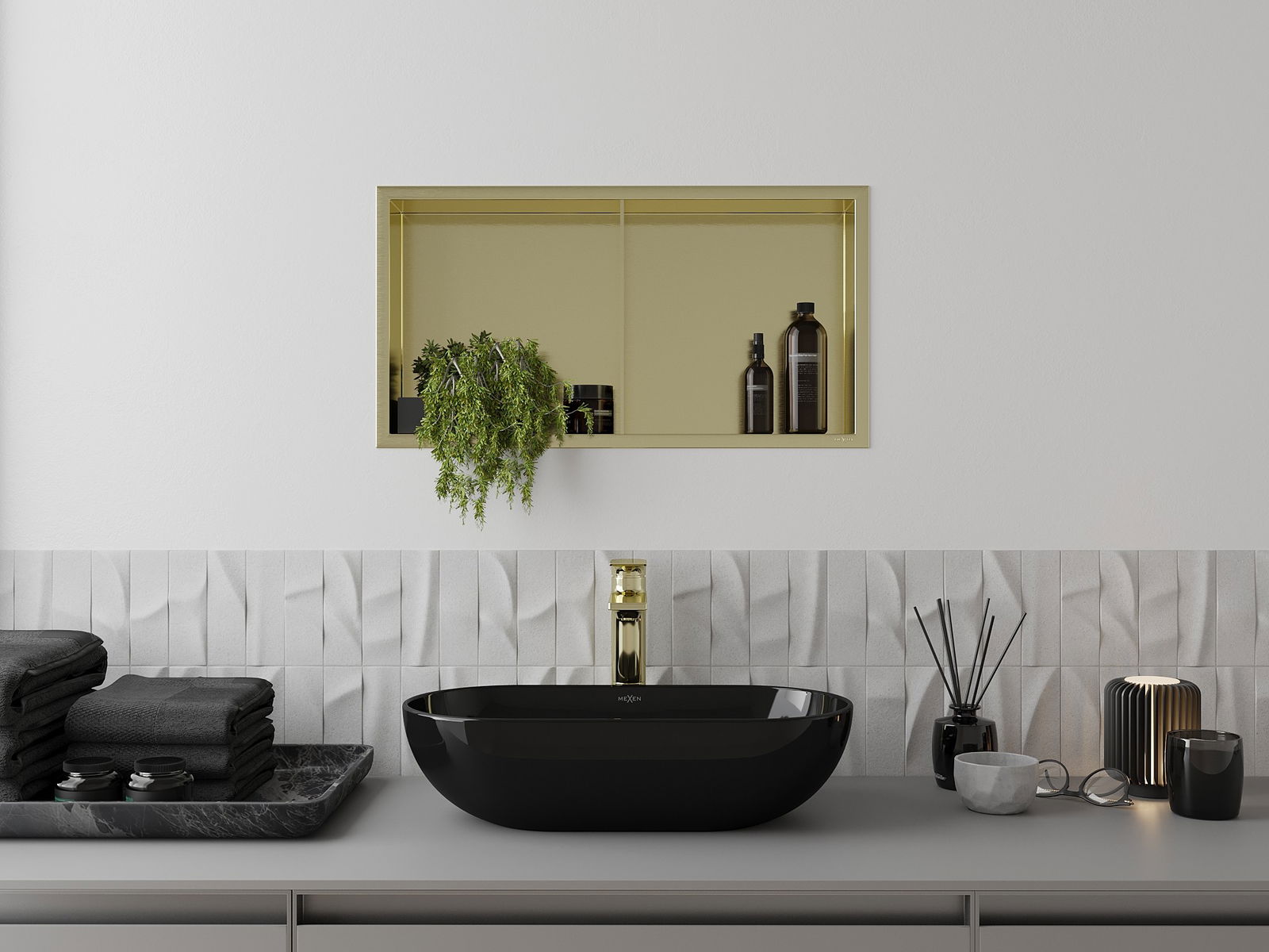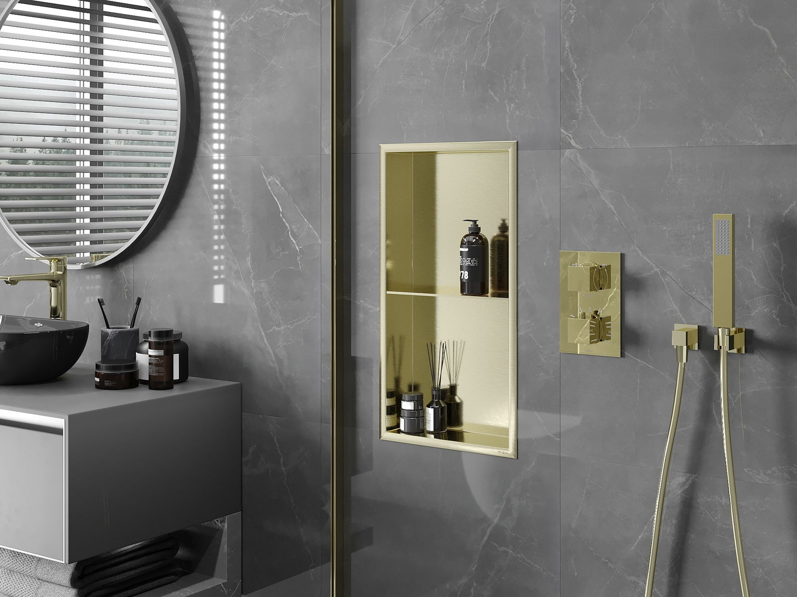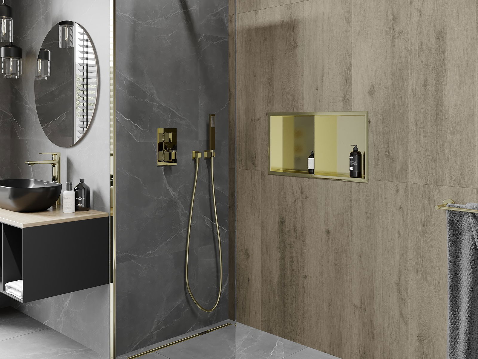 Mexen X-Wall-R raft de nișă cu flanșă și raft 60 x 30 cm, auriu periat - 1950603010S