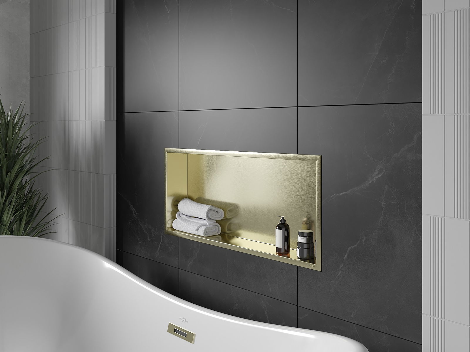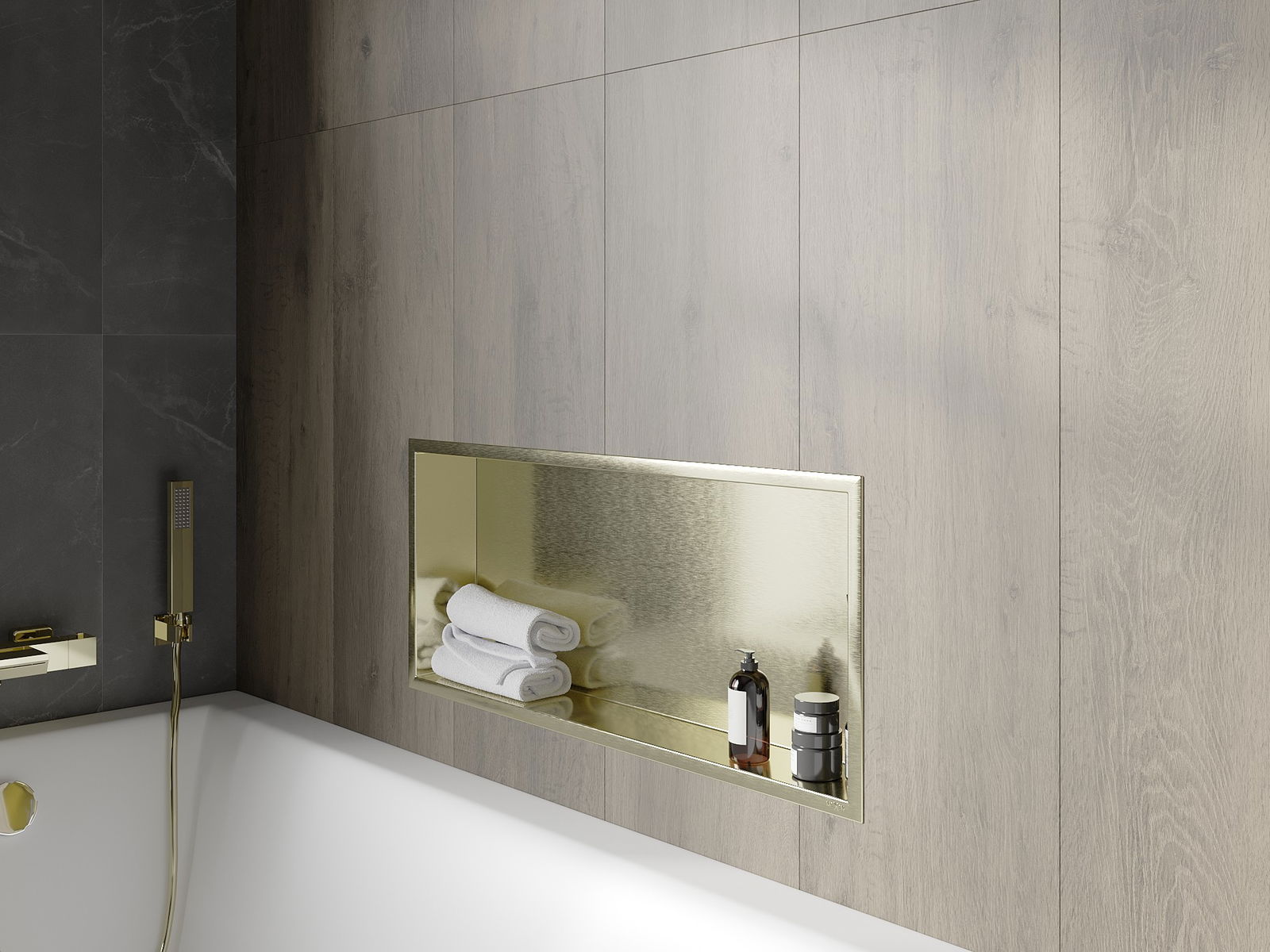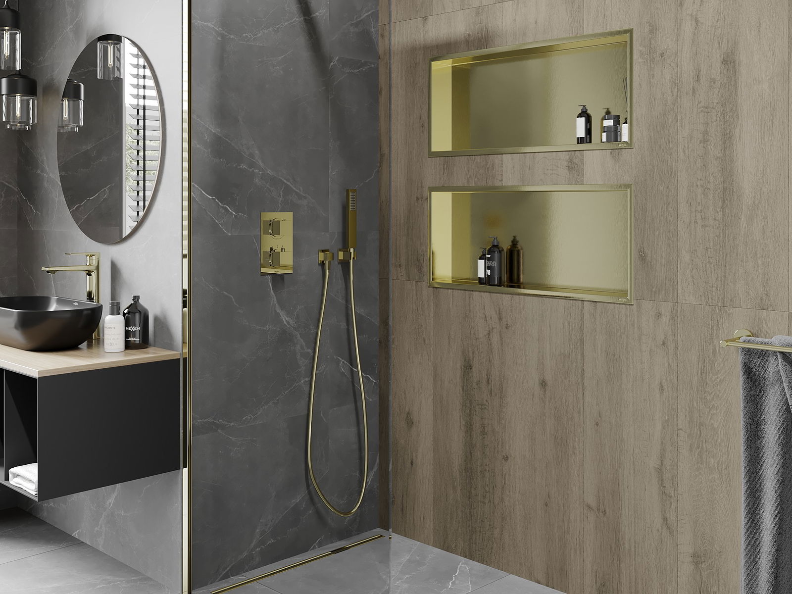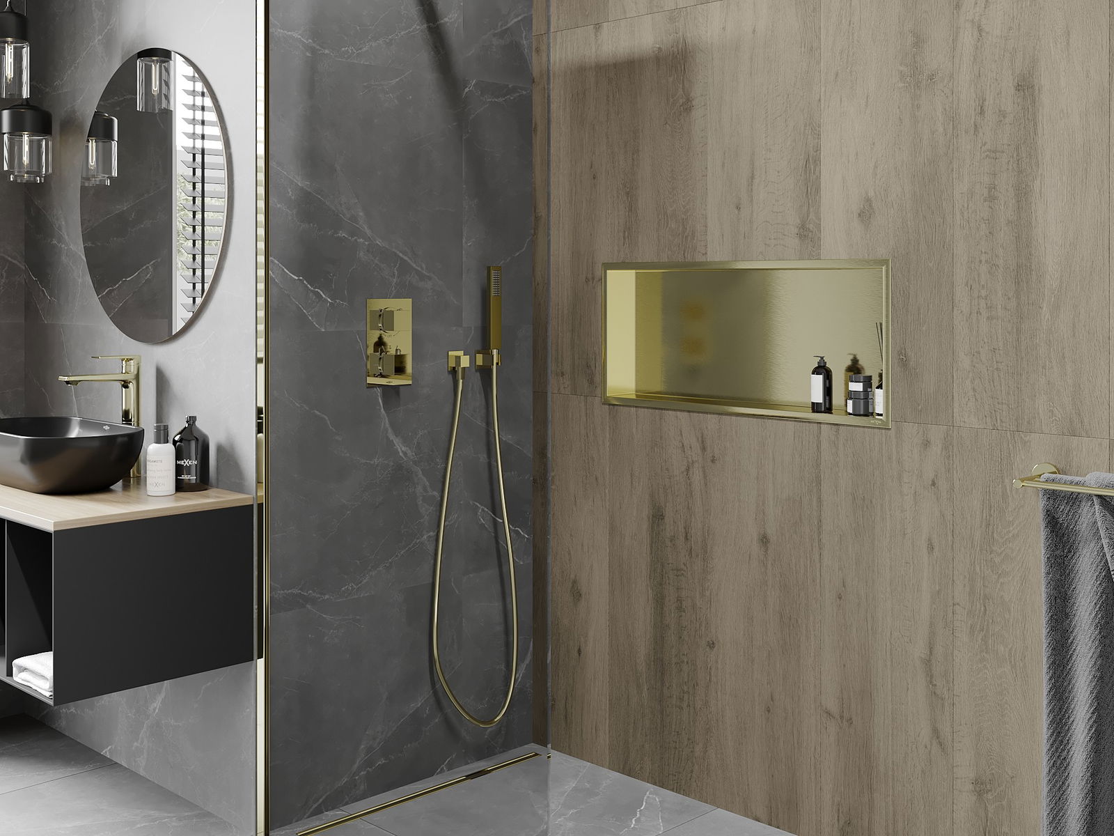 Mexen X-Wall-R raft nișat cu flanșă 75 x 30 cm, auriu periat - 1950753010
