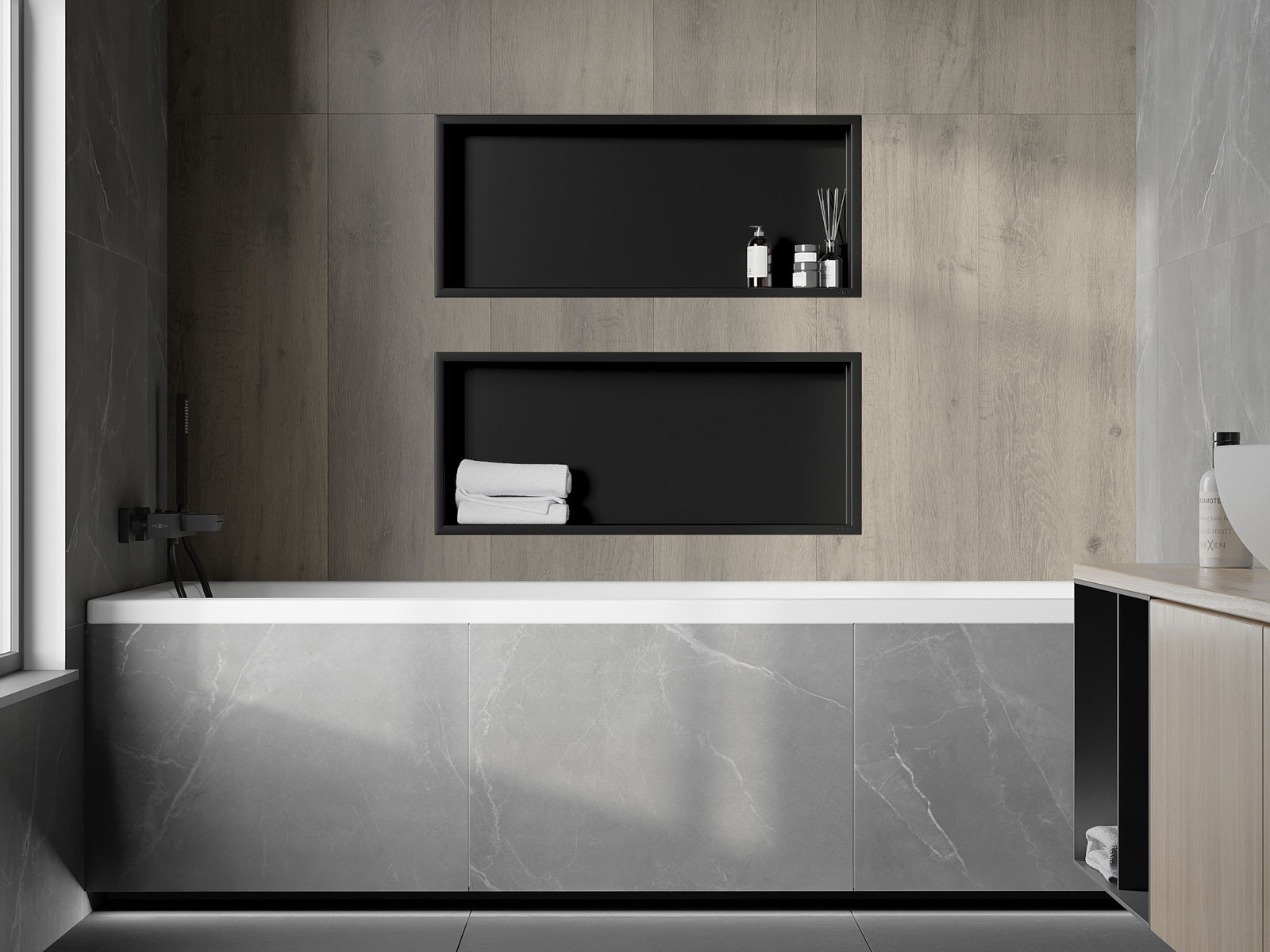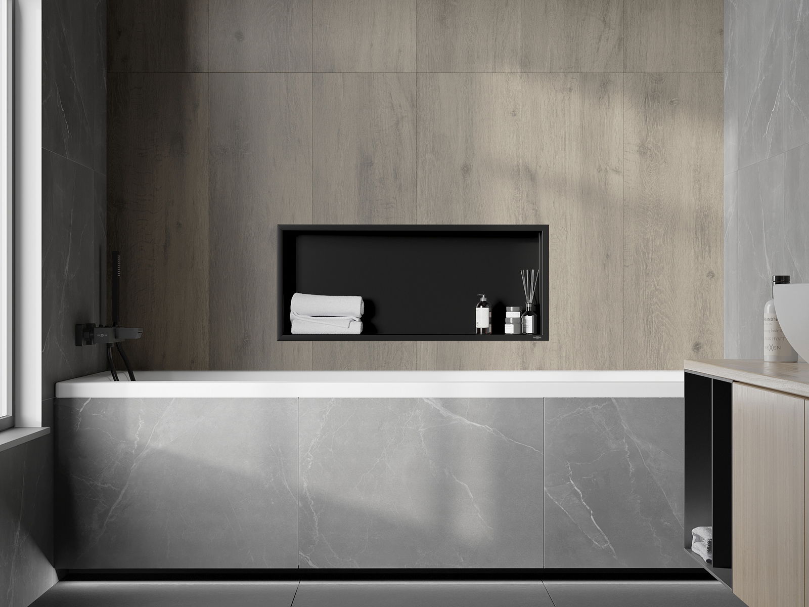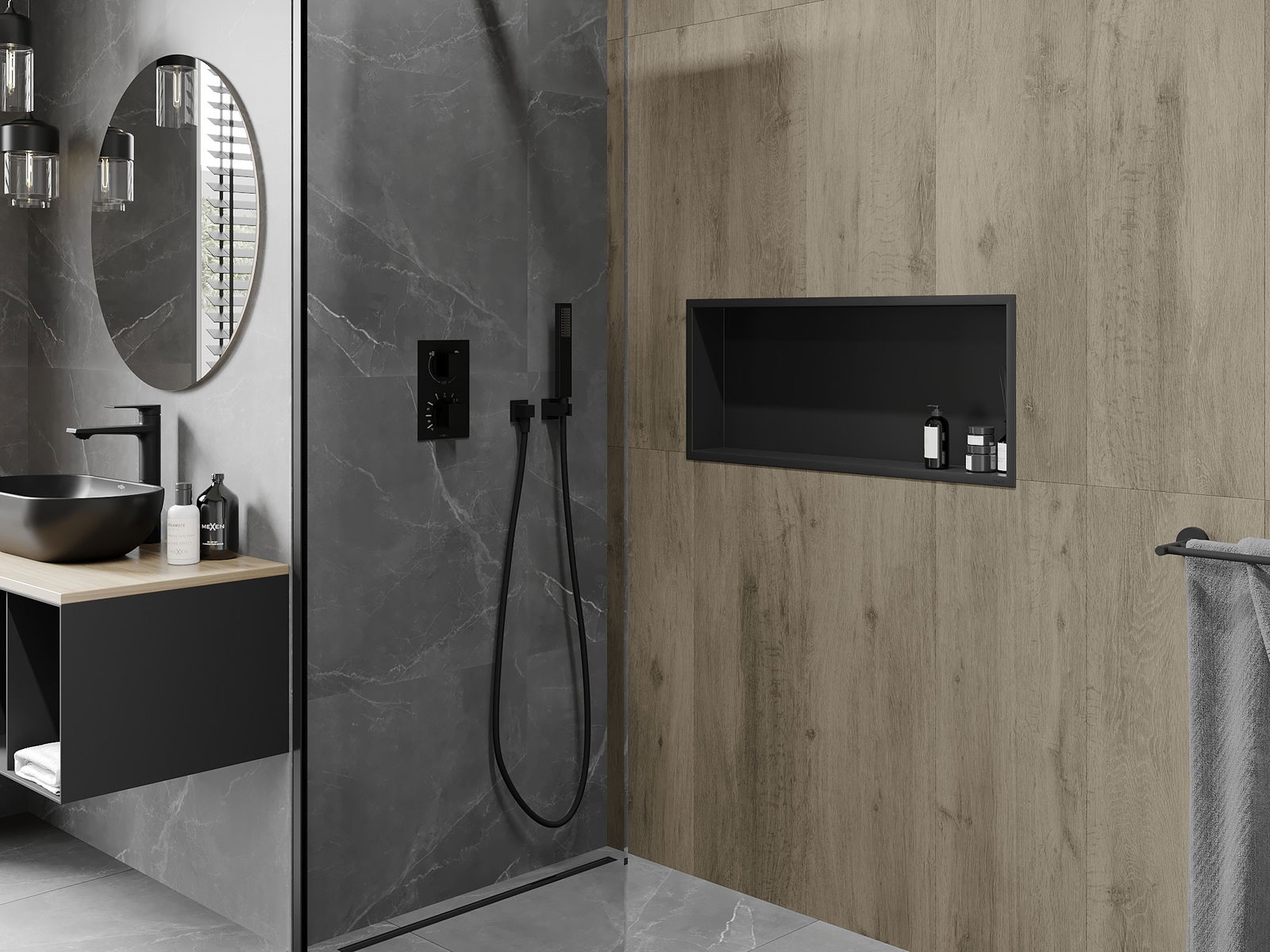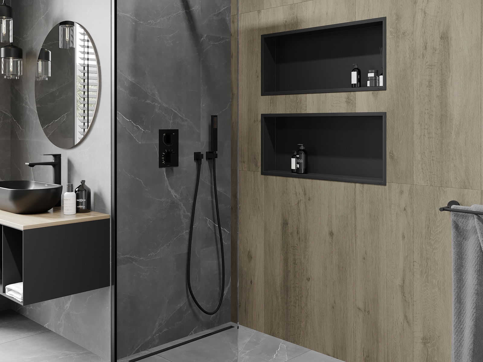 Mexen X-Wall-R raft nisă cu flanșă 75 x 30 cm, negru - 1970753010