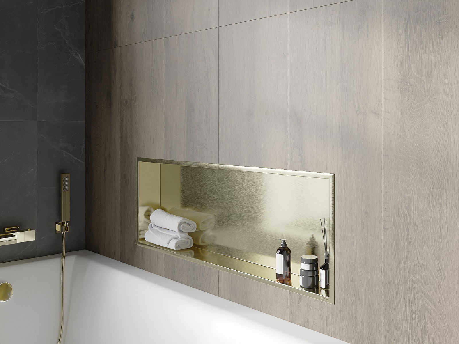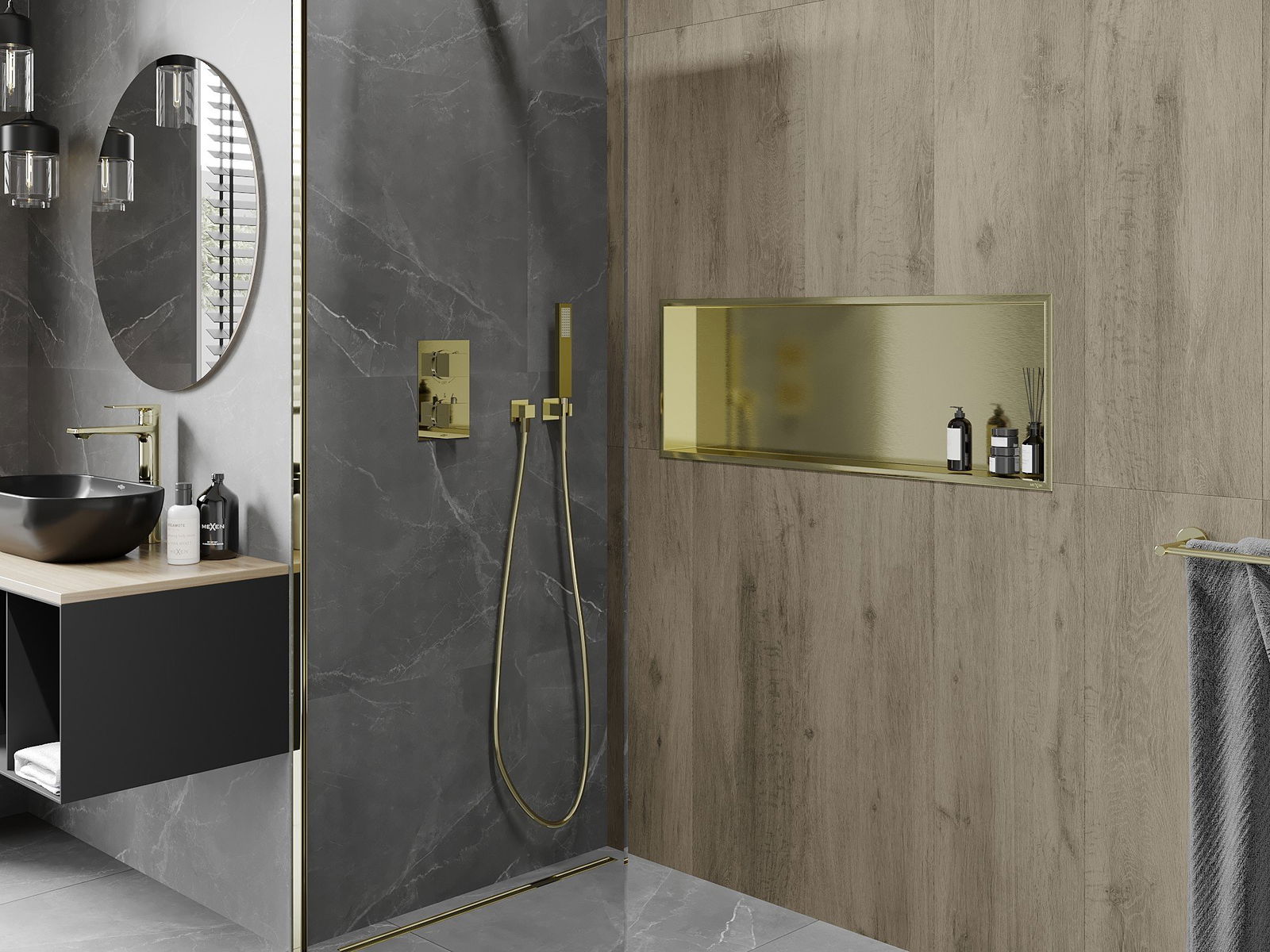 Mexen X-Wall-R poliță de nișă cu margine 90 x 30 cm, auriu periat - 1950903010