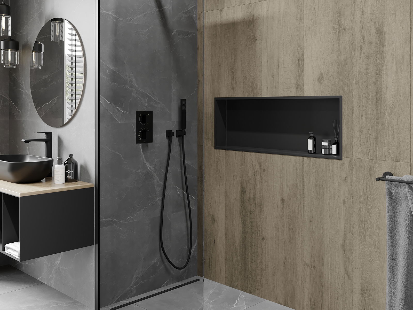 Mexen X-Wall-R raft de perete cu flanșă 90 x 30 cm, negru - 1970903010