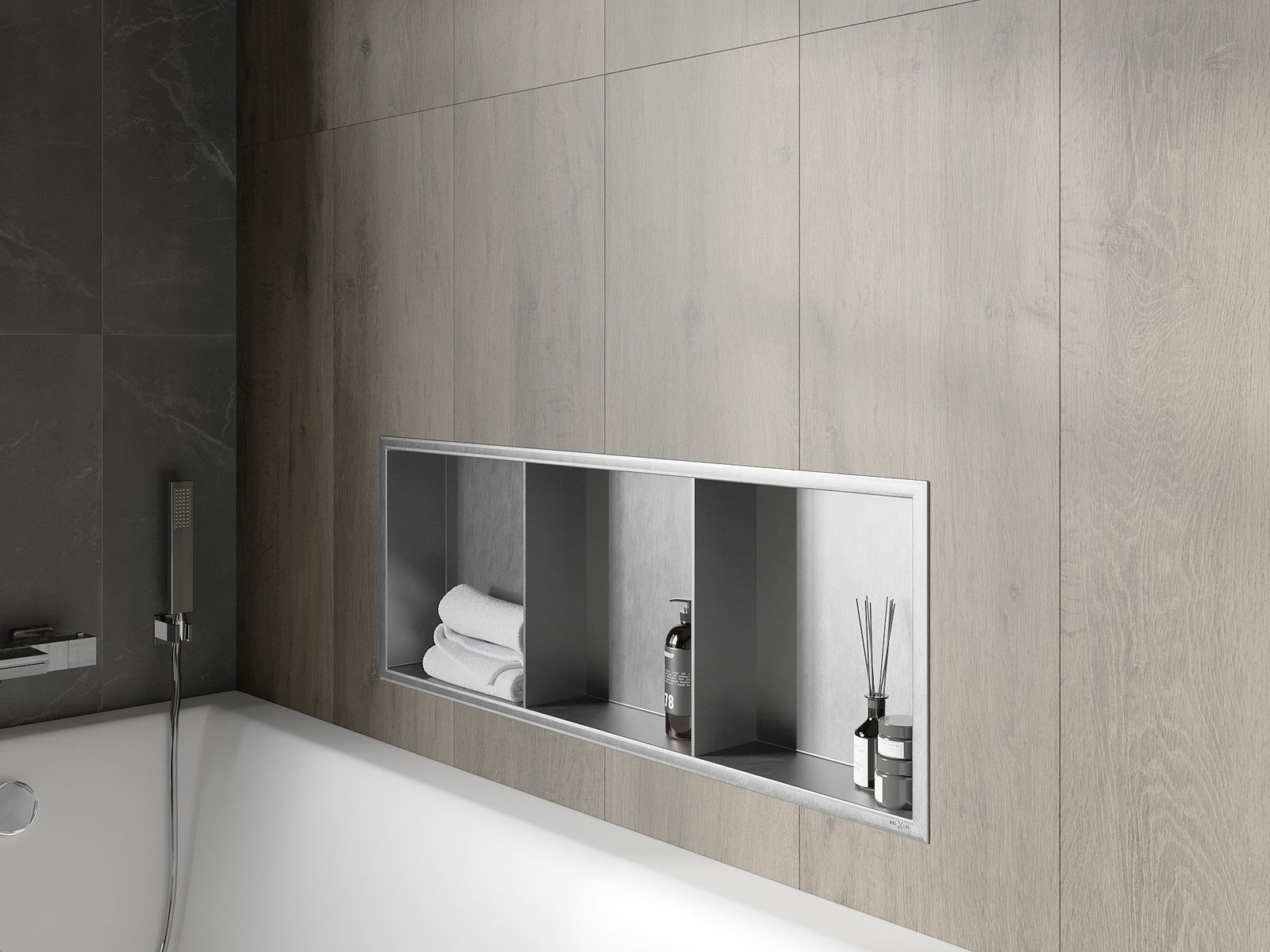 Mexen X-Wall-R etajeră încorporată cu flanșă și raft 90 x 30 cm, inox - 1910903010S