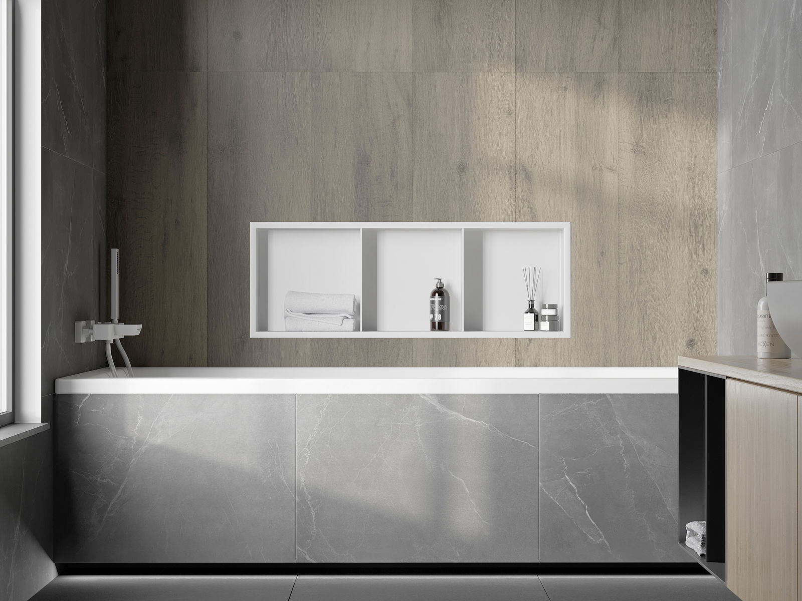 Posibilitatea instalării în perete sau într -o clădire special pregătită. Este o soluție extrem de modernă și funcțională, care vă permite să economisiți spațiu și să potriviți produsul cu estetica interiorului și să creați o compoziție coerentă.