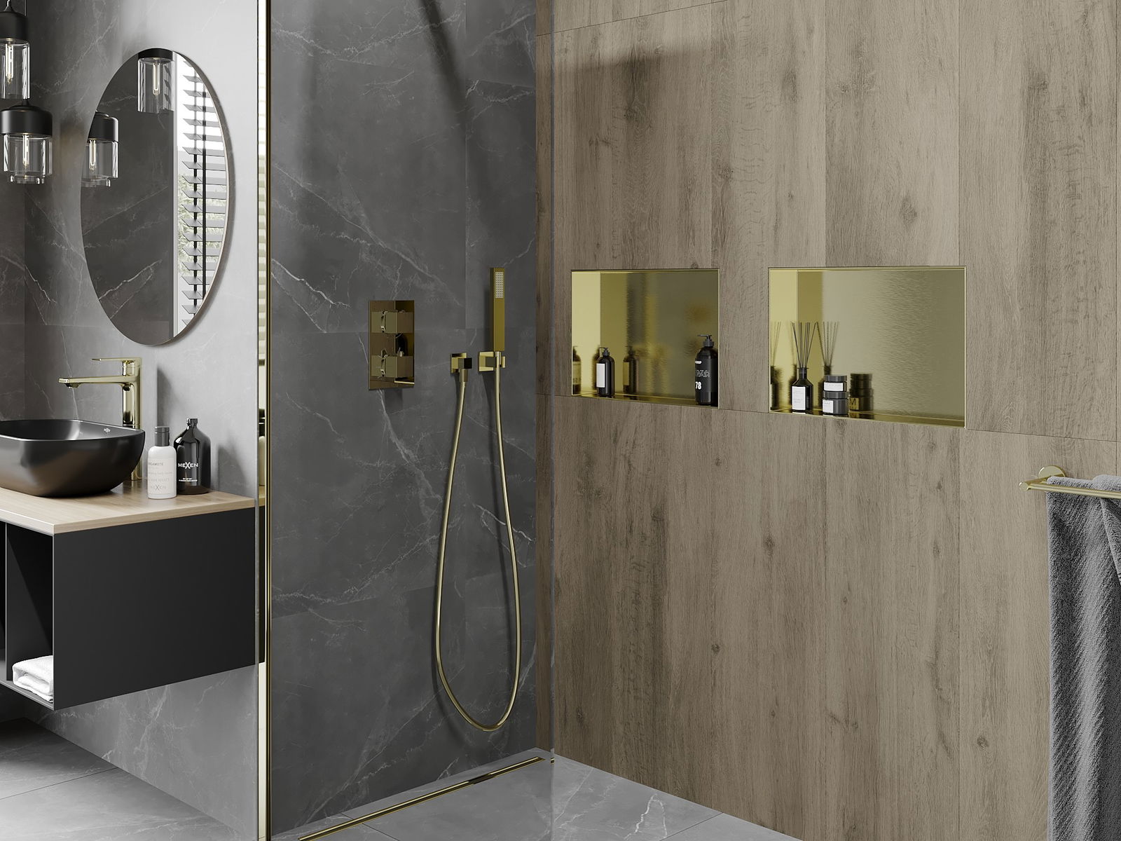 Mexen X-Wall-NR raft încorporat fără flanșă 45 x 30 cm, auriu periat - 1951453010
