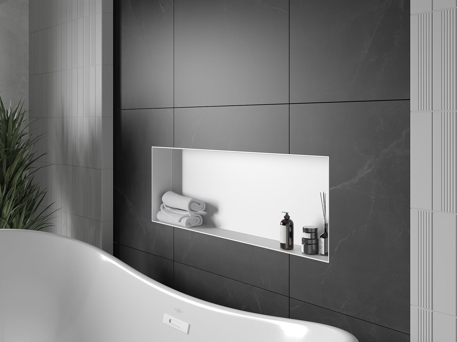 Mexen X-Wall-NR raft încastrat fără flanșă 90 x 30 cm, alb - 1921903010