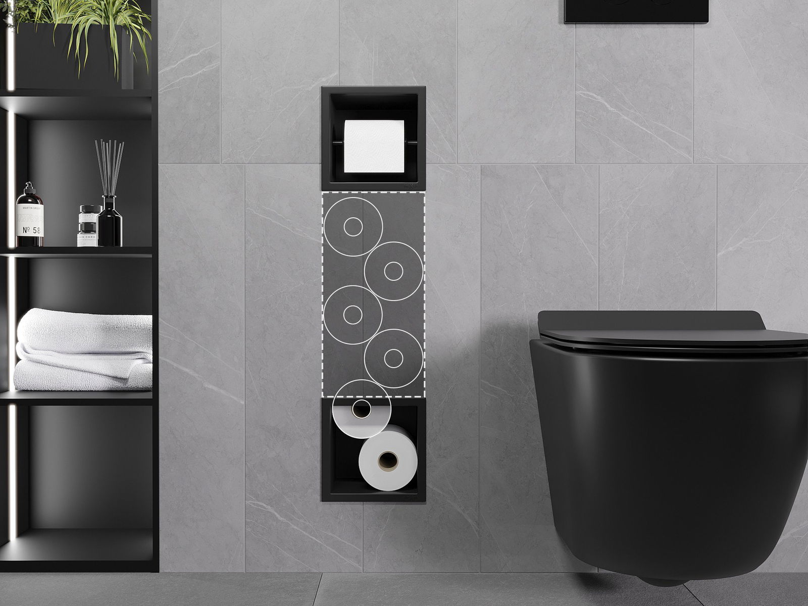 X-Wall este un suport practic de hârtie igienică, cu un depozit încorporat în perete. Noul rulou este întotdeauna la îndemână, iar locul prevăzut anterior pentru stocarea hârtiei igienice poate fi folosit într -un mod diferit.