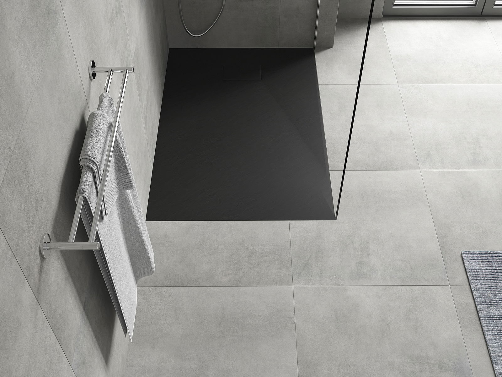 Suprafața tavii de duș seamănă cu o piatră cu structura sa. Este o combinație unică de aspect natural cu un aranjament interior modern. Adăugă caracter, subliniază estetica și eleganța decorului de baie și impresionează cu forma sa.
