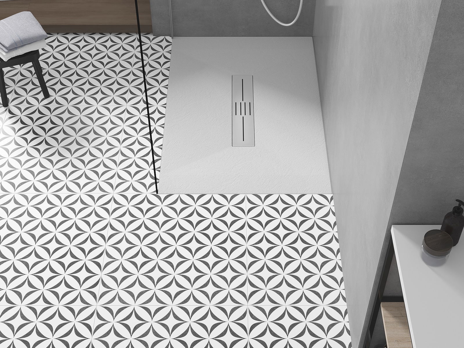 Înălțimea mică a tavii de duș permite montarea tradițională pe podea sau introducerea pe podea, creând o suprafață unică, uniformă. Flexibilitatea de montare vă permite să potriviți tava de duș cu diverse aranjamente interioare.
