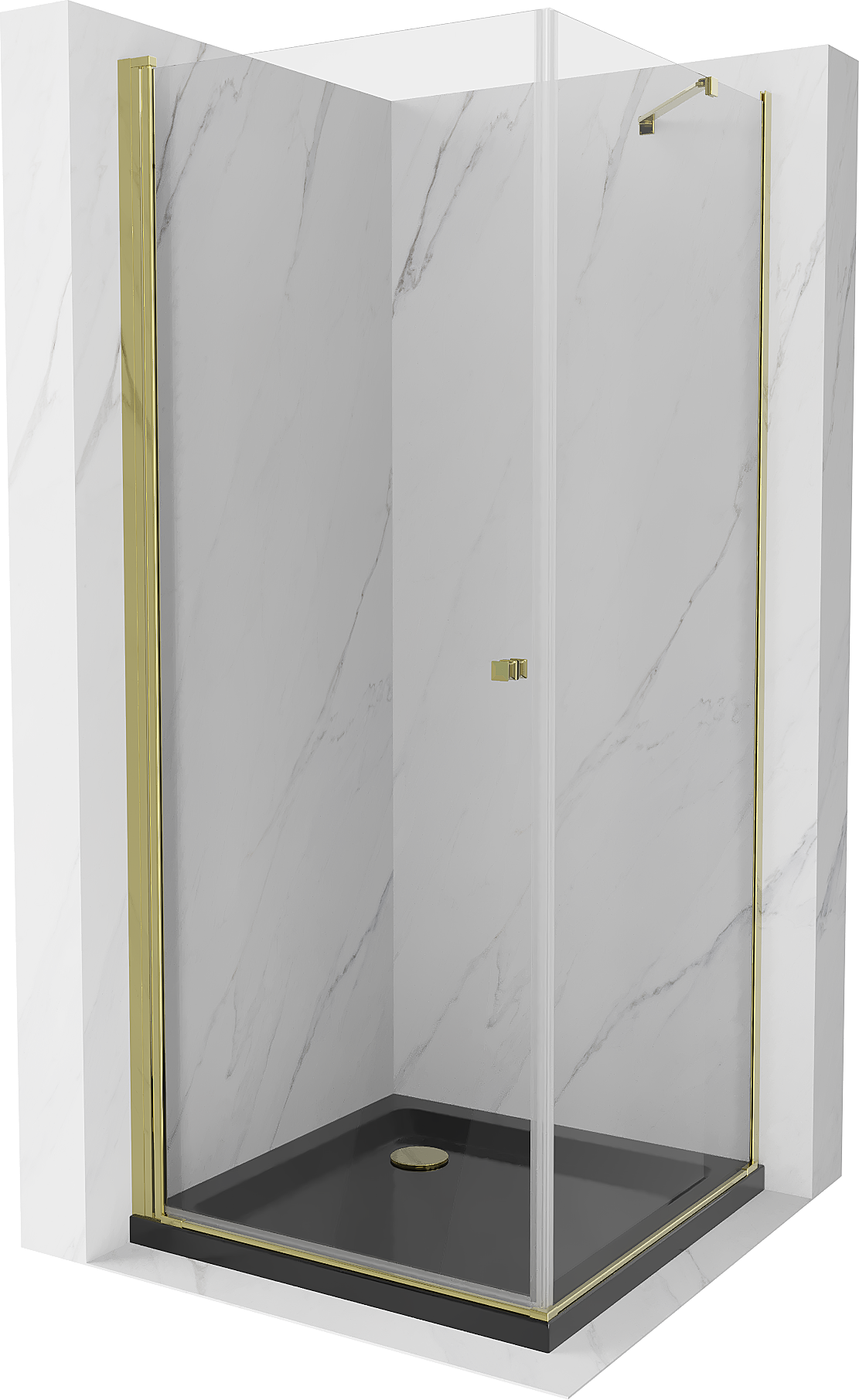 Mexen Pretoria cabină de duș batantă 80 x 80 cm, transparentă, aurie + cadă de duș Flat, negru - 852-080-080-50-00-4070G