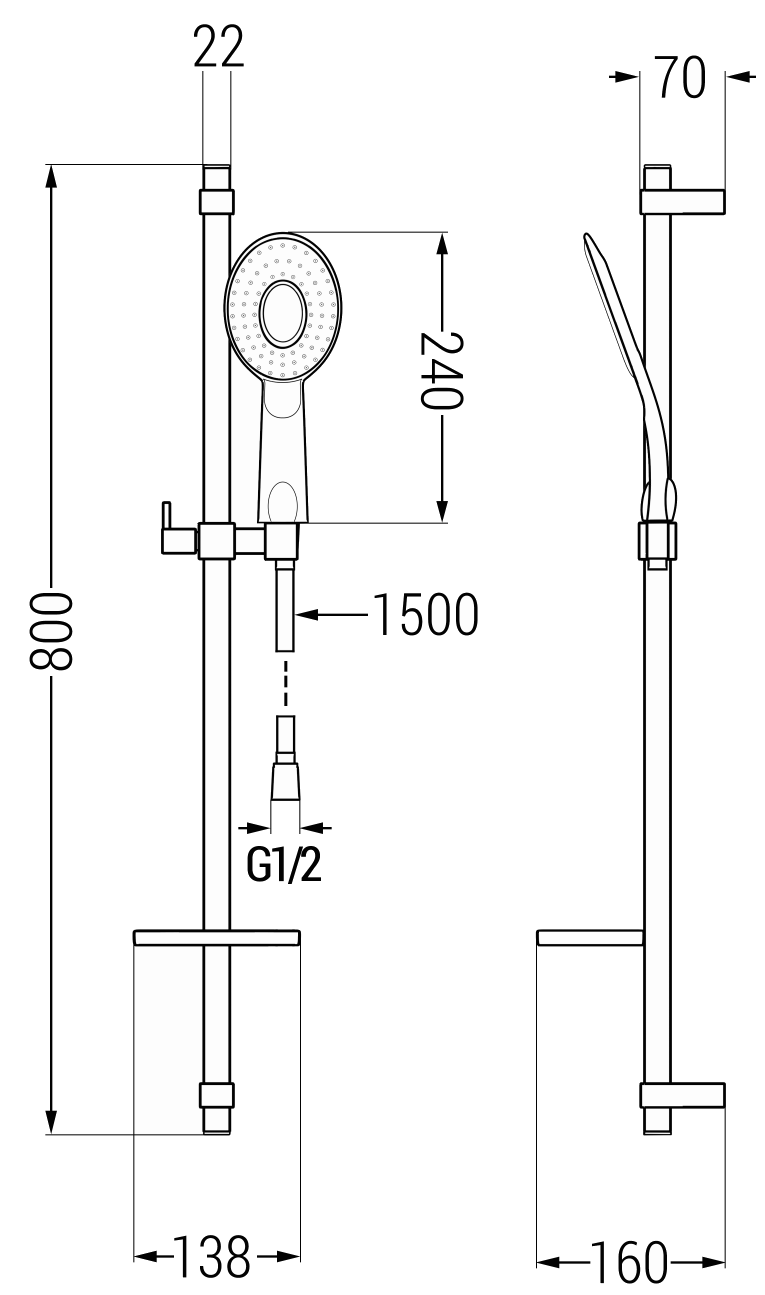 Racordul cu filet de 1/2" este un element standard utilizat pe scară largă în instalațiile de apă interioare. Datorită acestui racord, conectarea și montajul elementelor suplimentare ale dușului sunt mult mai ușoare și intuitive.