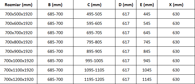 Dimensiune: 70x120 cm (ușă 70 cm, perete 120 cm)