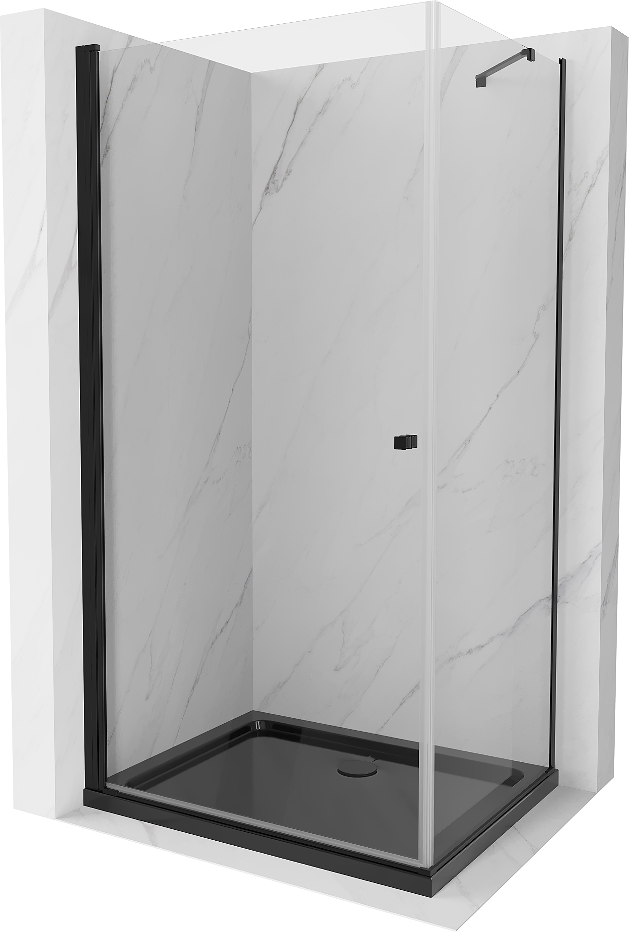 Mexen Pretoria cabină de duș cu ușă batantă 70 x 120 cm, transparentă, neagră + cadă Flat, neagră - 852-070-120-70-00-4070B