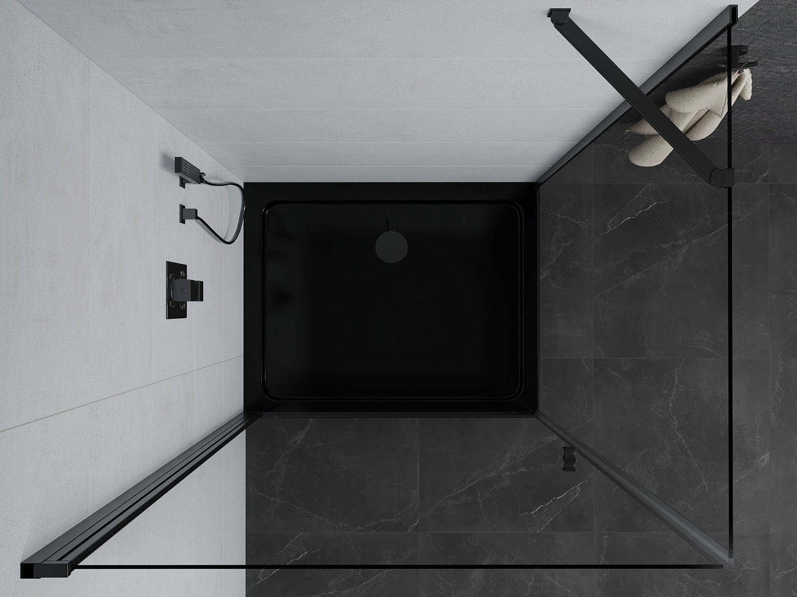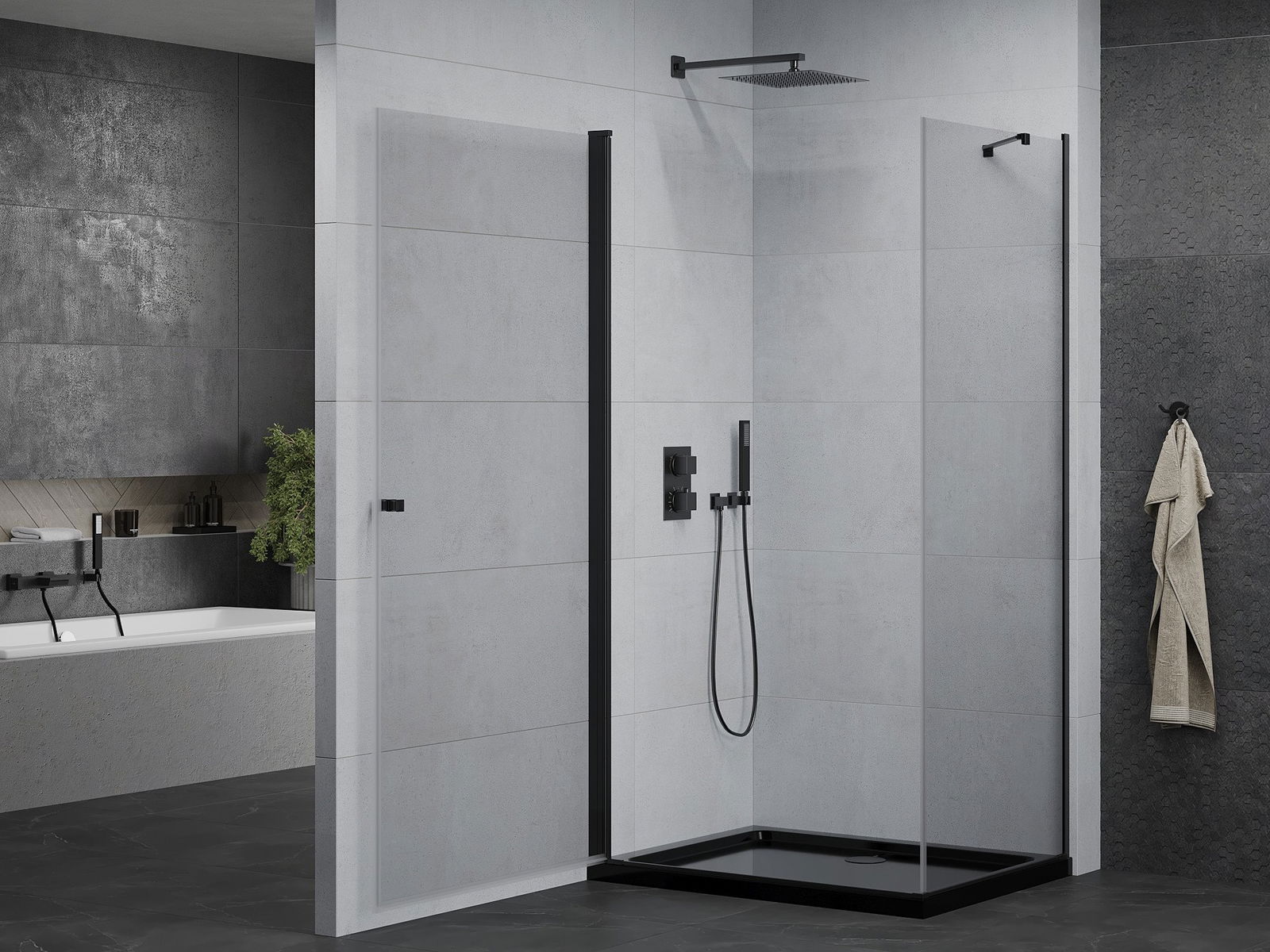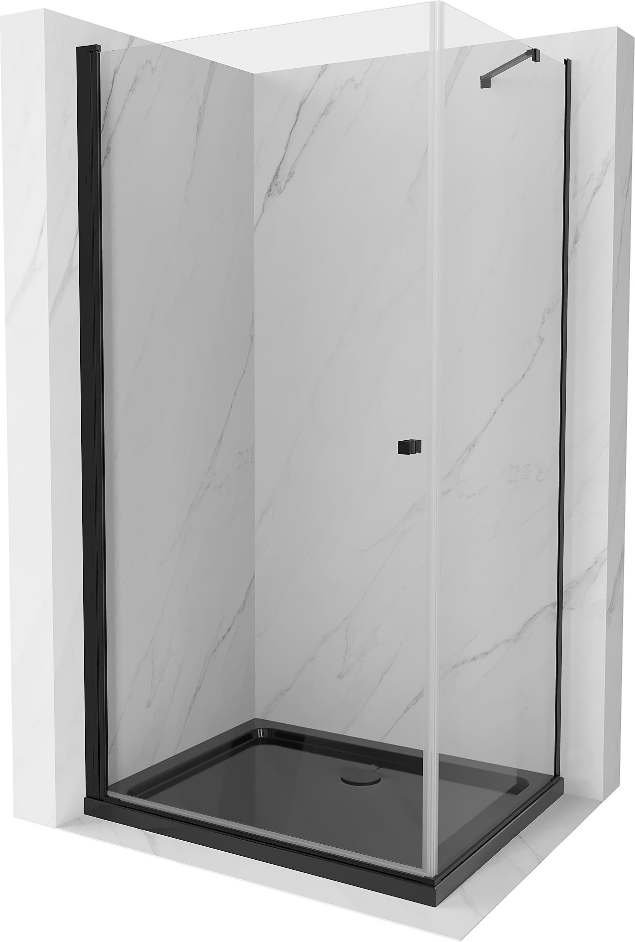 Mexen Pretoria cabină de duș cu ușă batantă 80 x 100 cm, transparentă, neagră + cadă de duș Flat, neagră - 852-080-100-70-00-40?