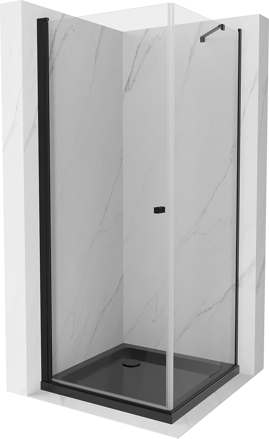 Mexen Pretoria cabină de duș pivotantă 90 x 90 cm, transparentă, neagră + cadă de duș Flat, neagră