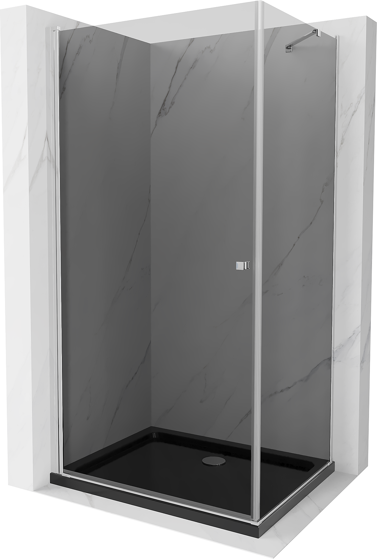 Mexen Pretoria cabină de duș cu uși batante 80 x 90 cm, grafit, crom + cadă Flat, negru - 852-080-090-01-40-4070