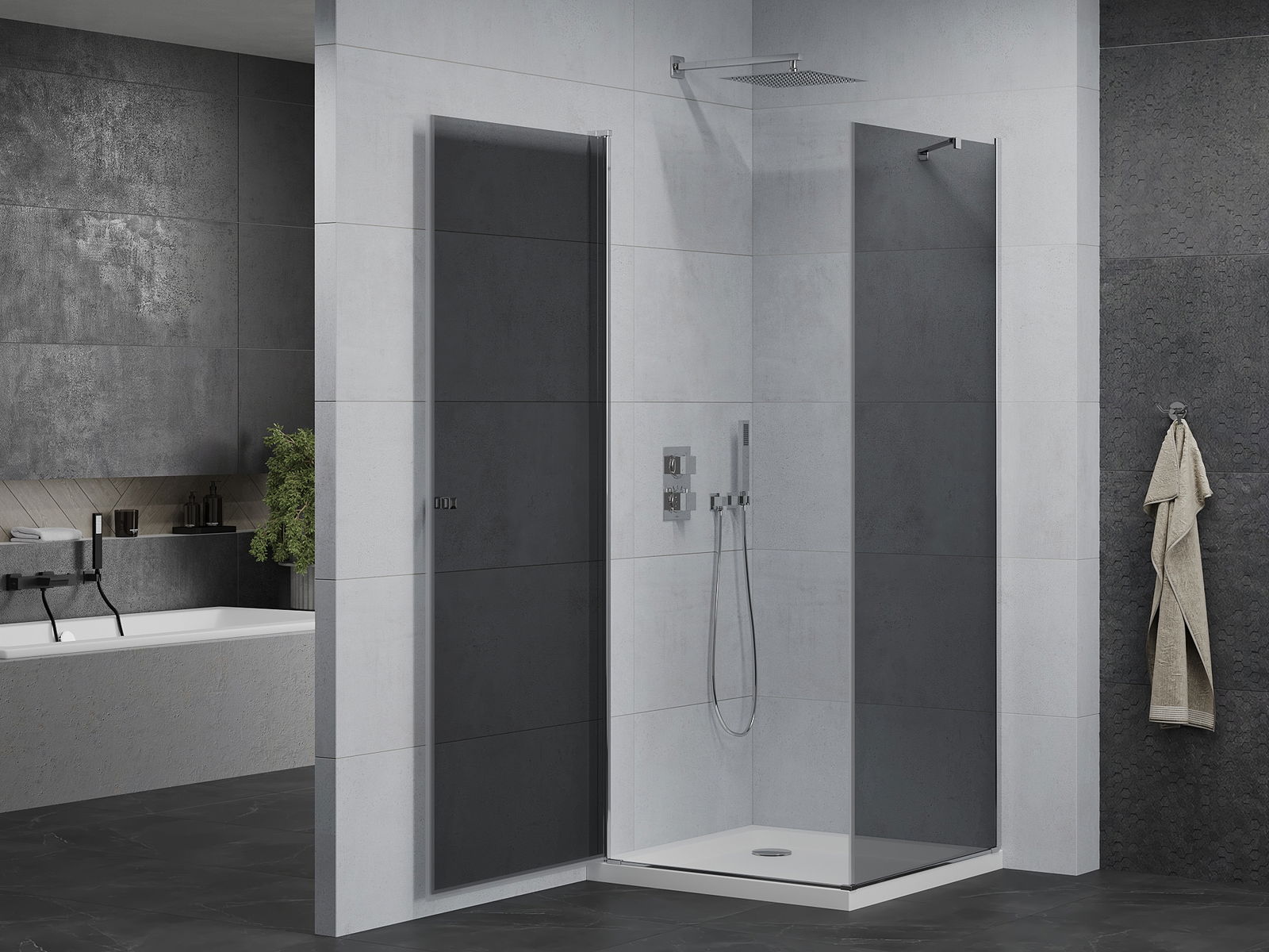 Mexen Pretoria cabină de duș pivotantă 100 x 100 cm, grafit, crom + cadă plată - 852-100-100-01-40-4010