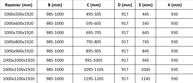 Dimensiune: 100x120 cm (uși de 100 cm, perete de 120 cm)