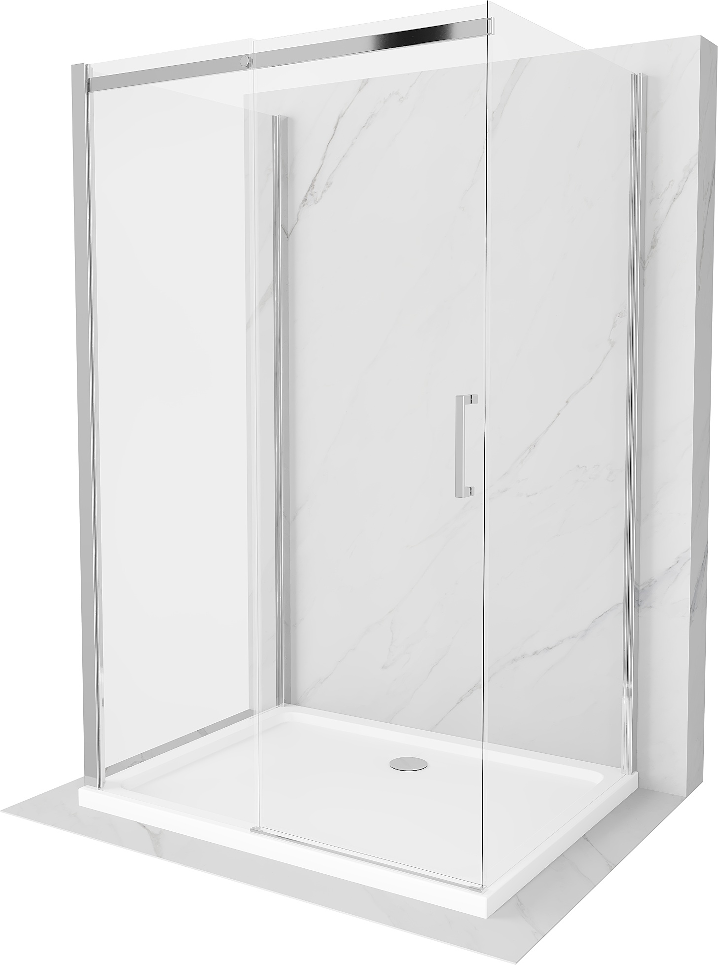 Mexen Omega-3S cabina de duș cu 3 pereți, culisantă 120x80 cm, transparent, crom + cadă Flat - 825-120-080-01-00-3s-4010
