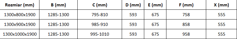 Dimensiune: 130x90 cm (uși 130 cm, pereți 90 cm)
