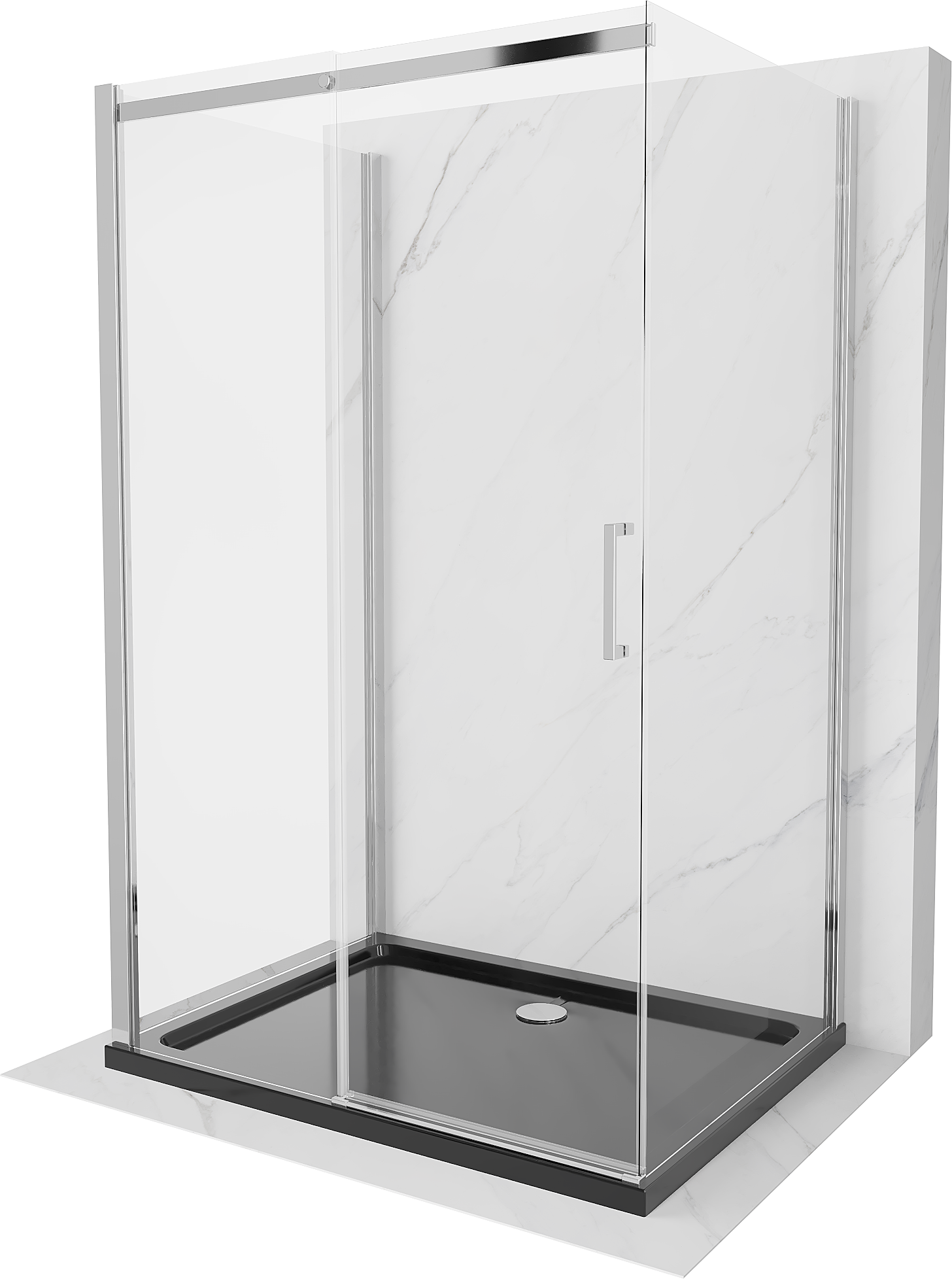 Cabină de duș Mexen Omega-3S cu 3 pereți, glisantă 100x100 cm, transparentă, crom + cadă Flat - 825-100-100-01-00-3s-4070