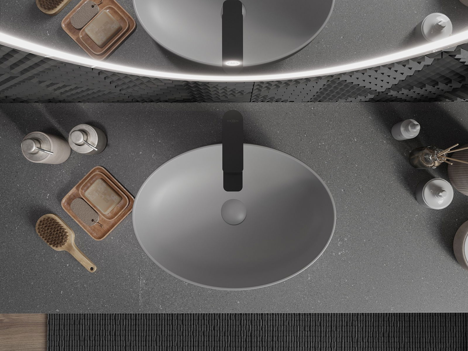 Suprafața mată a ceramicii subliniază perfect natura culorii produsului, oferindu -i un finisaj unic și expresiv. Structura subtilă a ceramicii mate introduce eleganță în baie, creând un spațiu estetic.
