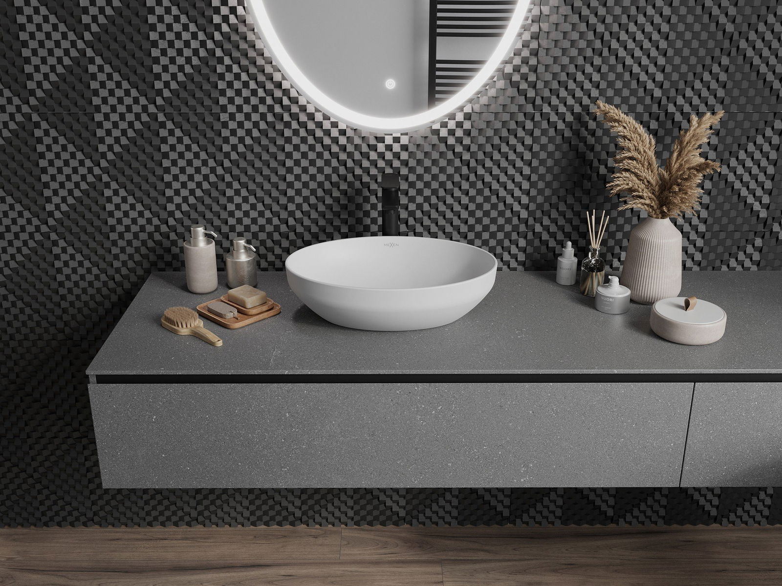 Suprafața mată a ceramicii subliniază perfect natura culorii produsului, oferindu -i un finisaj unic și expresiv. Structura subtilă a ceramicii mate introduce eleganță în baie, creând un spațiu estetic.