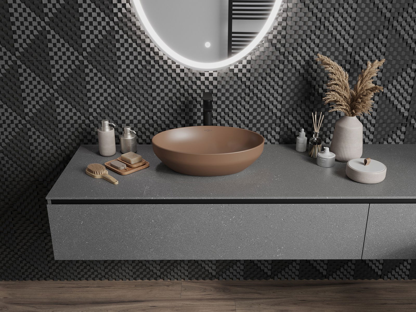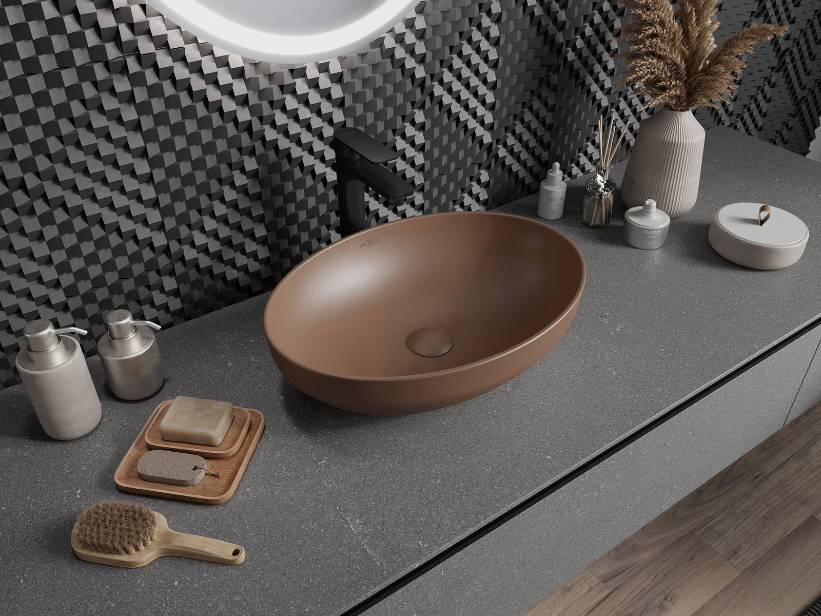 Suprafața mată a ceramicii subliniază perfect caracterul culorii produsului, oferindu-i un finisaj unic și expresiv. Structura subtilă a ceramicii mate aduce eleganță în baie, creând un spațiu estetic.