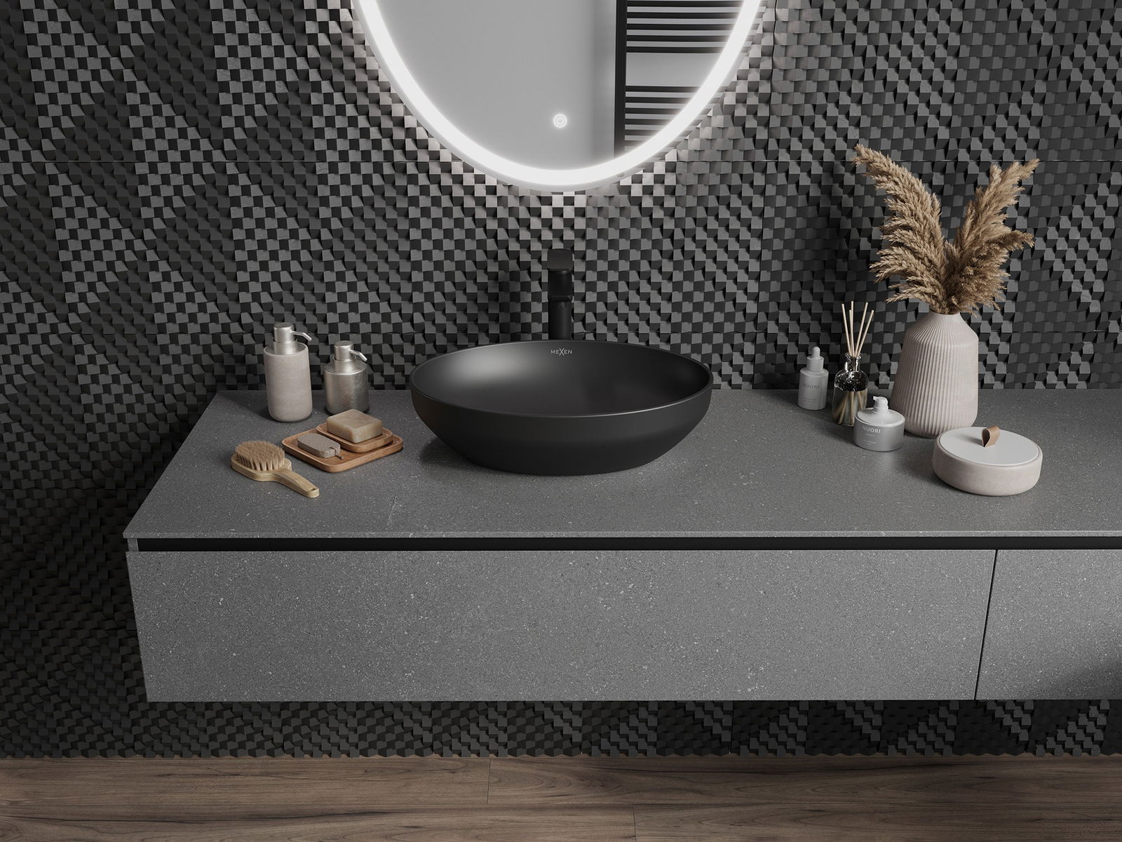 Suprafața mată a ceramicii subliniază perfect natura culorii produsului, oferindu -i un finisaj unic și expresiv. Structura subtilă a ceramicii mate introduce eleganță în baie, creând un spațiu estetic.
