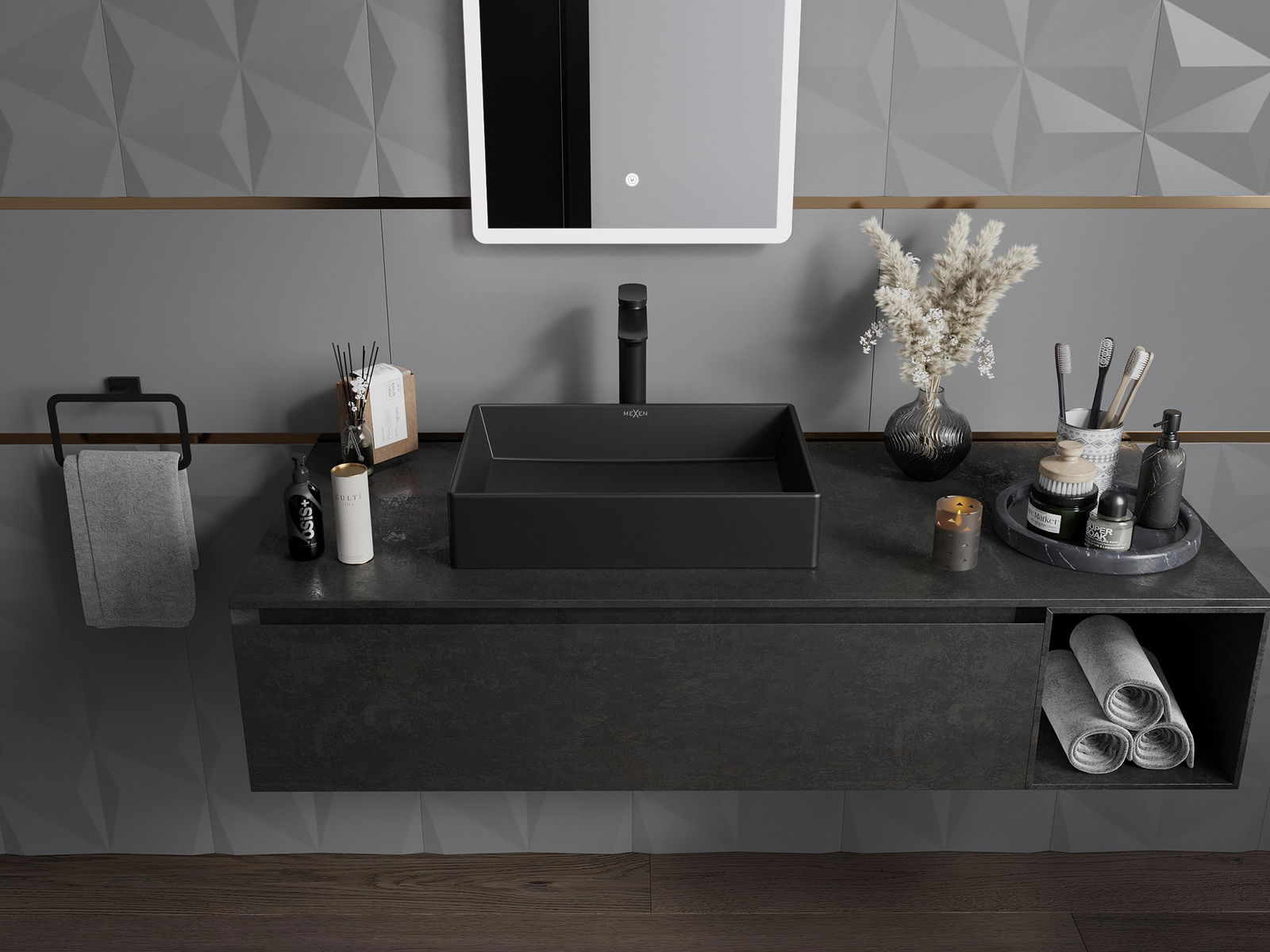 Suprafața mată a ceramicii subliniază perfect natura culorii produsului, oferindu -i un finisaj unic și expresiv. Structura subtilă a ceramicii mate introduce eleganță în baie, creând un spațiu estetic.