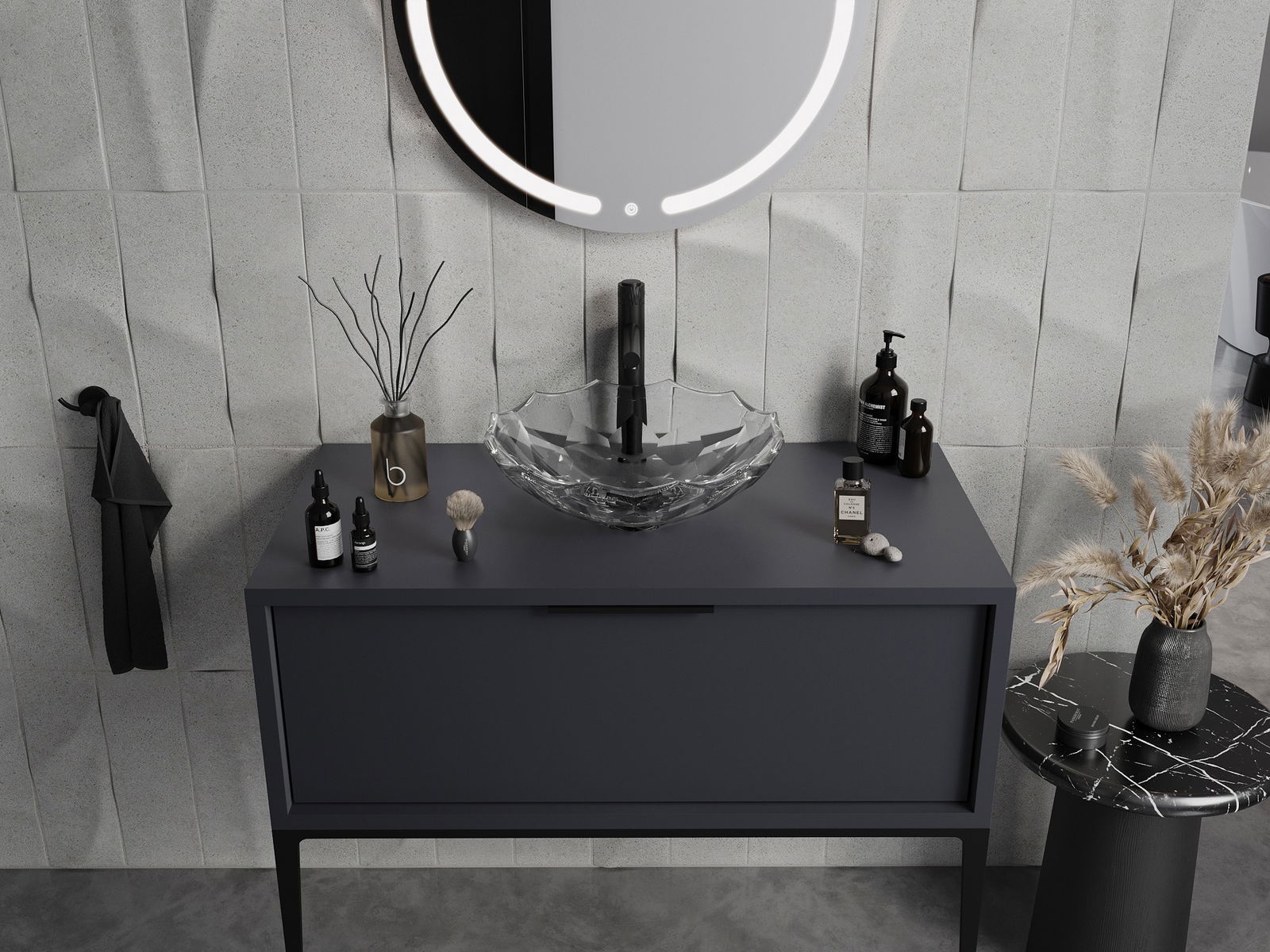 Chiuveta se distinge printr -o structură unică de cristale, oferindu -i un aspect unic și extrem de eficient. Cristalele strălucesc în lumină, prinzând ochiul și adăugând eleganță. O soluție practică și elegantă pentru fiecare baie.