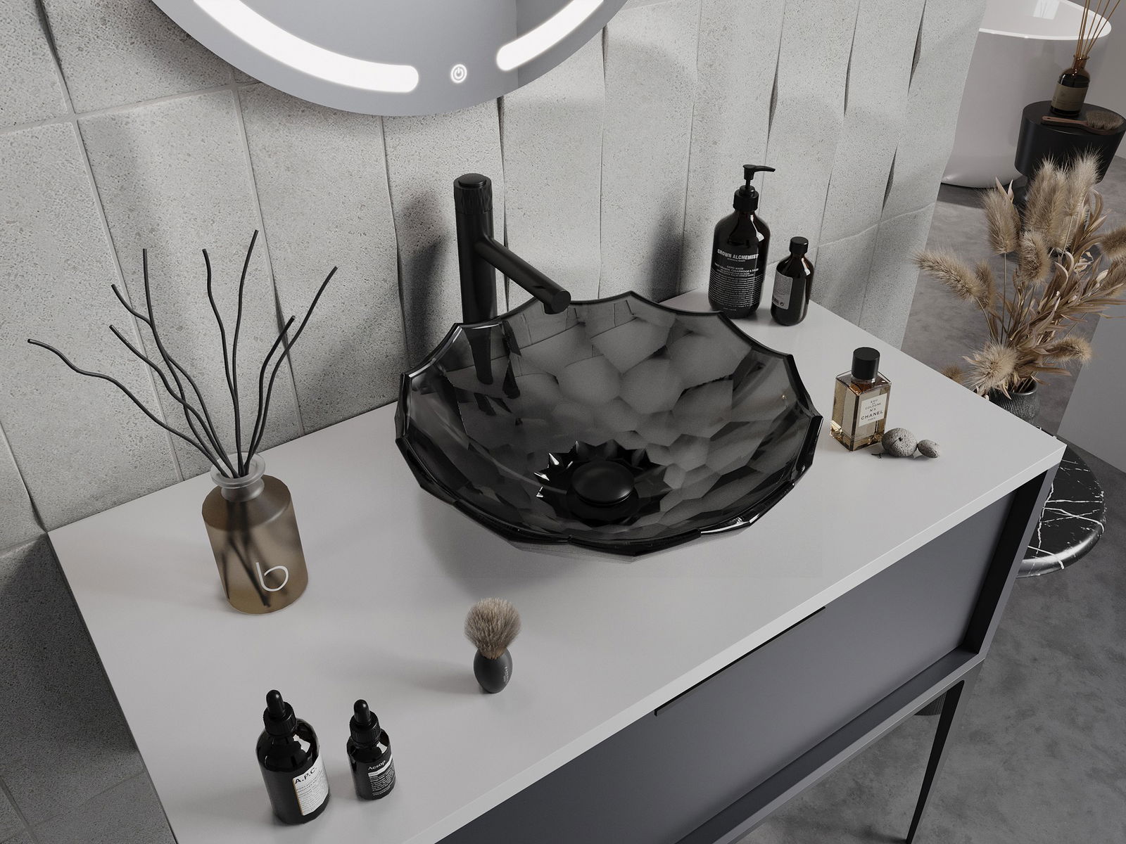 Chiuveta se distinge printr -o structură unică de cristale, oferindu -i un aspect unic și extrem de eficient. Cristalele strălucesc în lumină, prinzând ochiul și adăugând eleganță. O soluție practică și elegantă pentru fiecare baie.