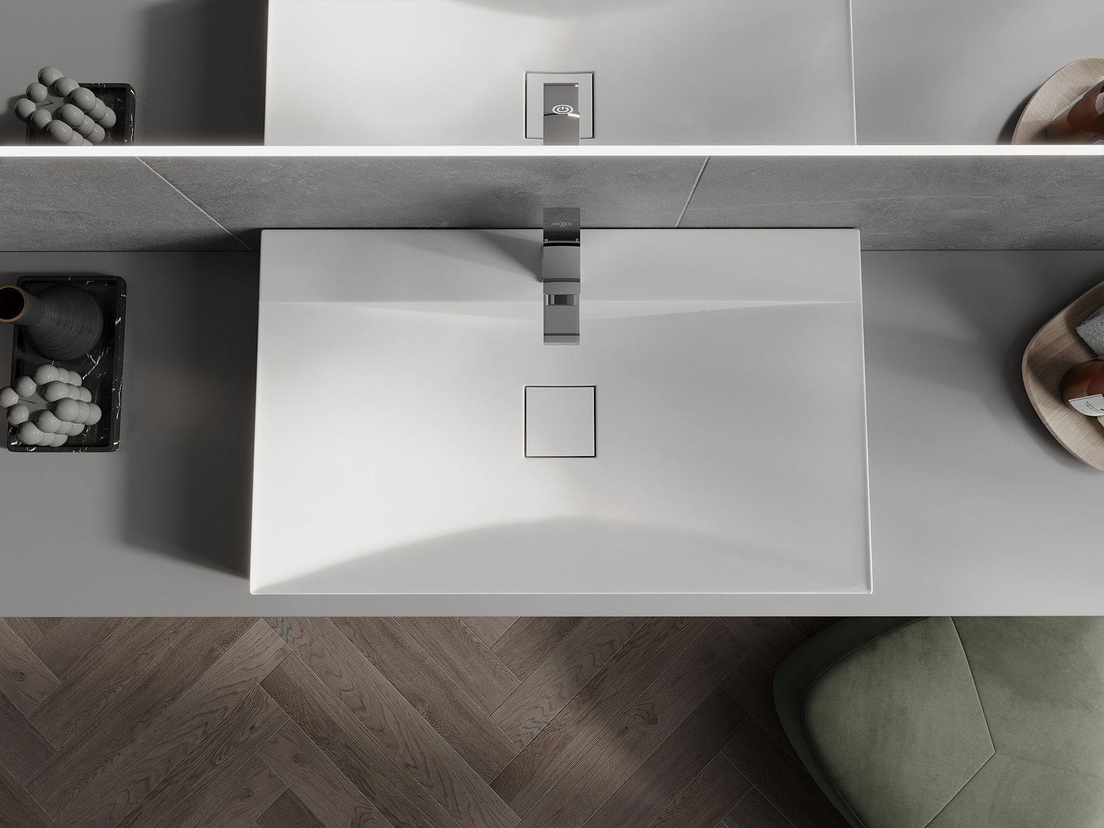 Chiuveta are o gaură în care putem monta bateria. Acest lucru economisește un spațiu valoros în baie și subliniază estetica acesteia. Această soluție vă permite, de asemenea, să păstrați cu ușurință curățarea în jurul chiuvetei.