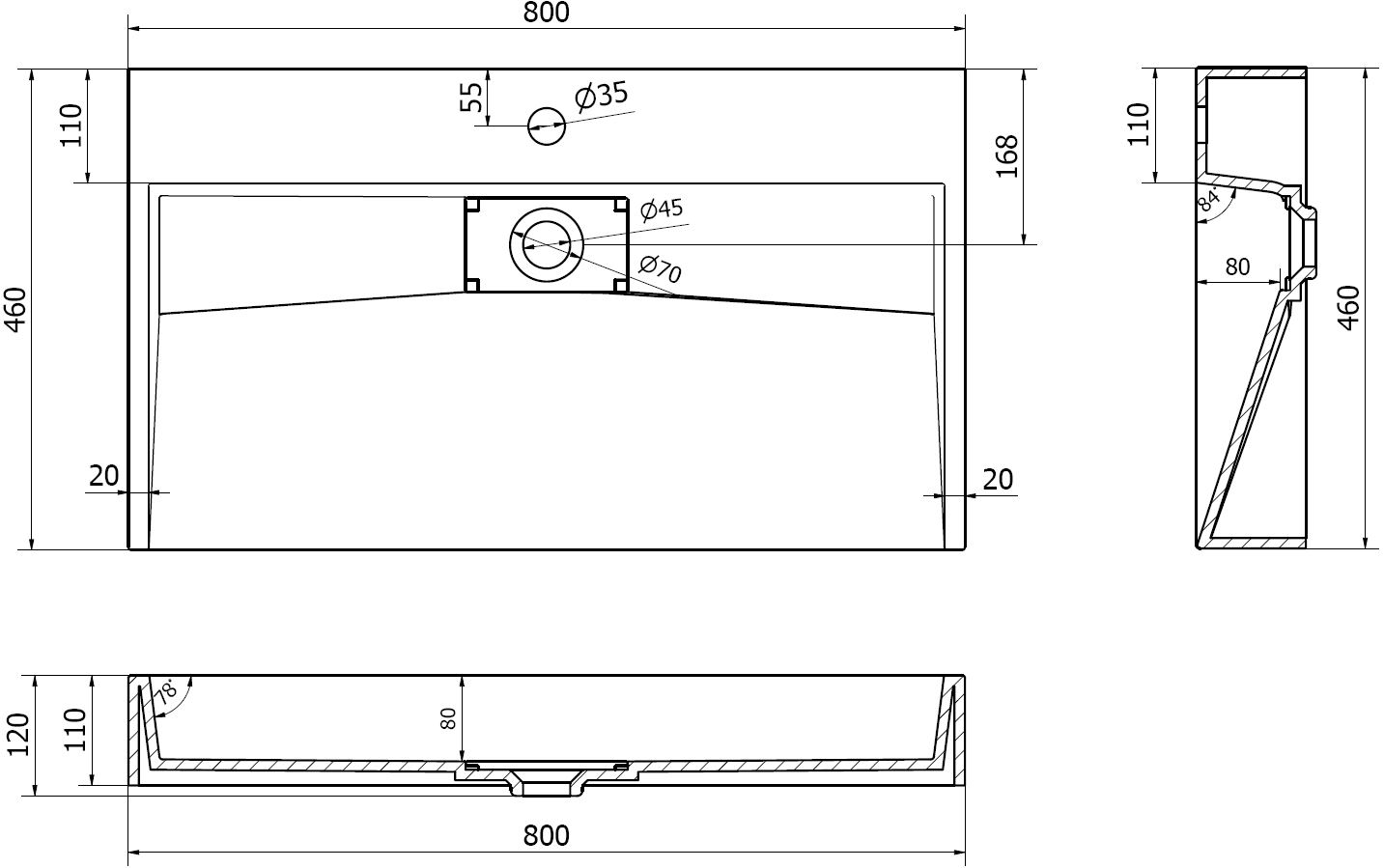 Mexen Ava lavoar pe blat din conglomerat 1/O 80 x 46 cm, alb - 23018001