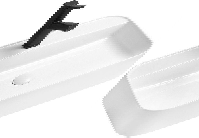 Chiuveta are o gaură în care putem monta bateria. Acest lucru economisește un spațiu valoros în baie și subliniază estetica acesteia. Această soluție vă permite, de asemenea, să păstrați cu ușurință curățarea în jurul chiuvetei.