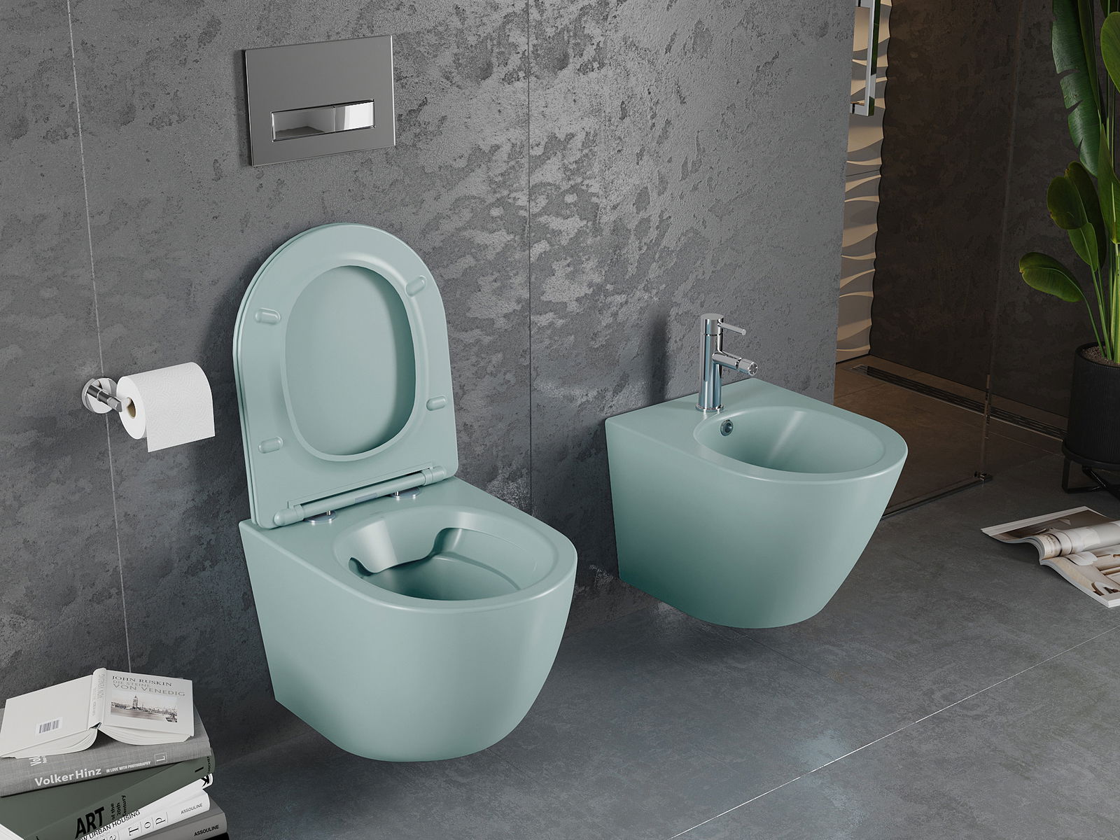 Suprafața mată a ceramicii subliniază perfect natura culorii produsului, oferindu -i un finisaj unic și expresiv. Structura subtilă a ceramicii mate introduce eleganță în baie, creând un spațiu estetic.