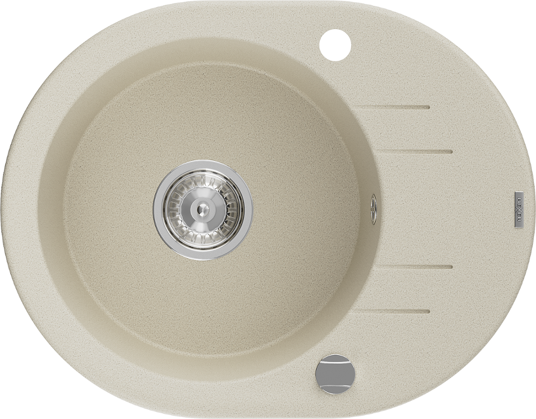 Chiuvetă granitică Mexen Kevin cu o cuvă și scurgător 586 x 458 mm, bej, sifon crom - 6517581005-69